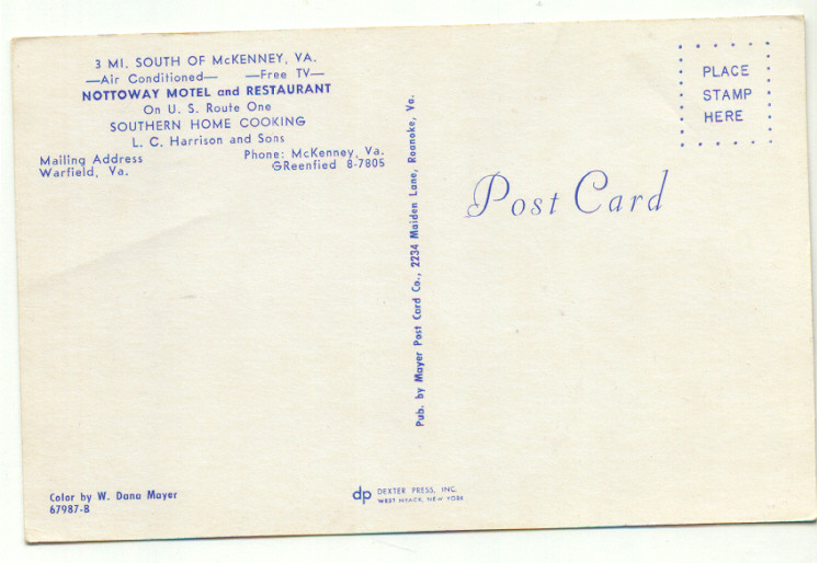 McKenney VA Nottoway Motel Postcard - Virginia