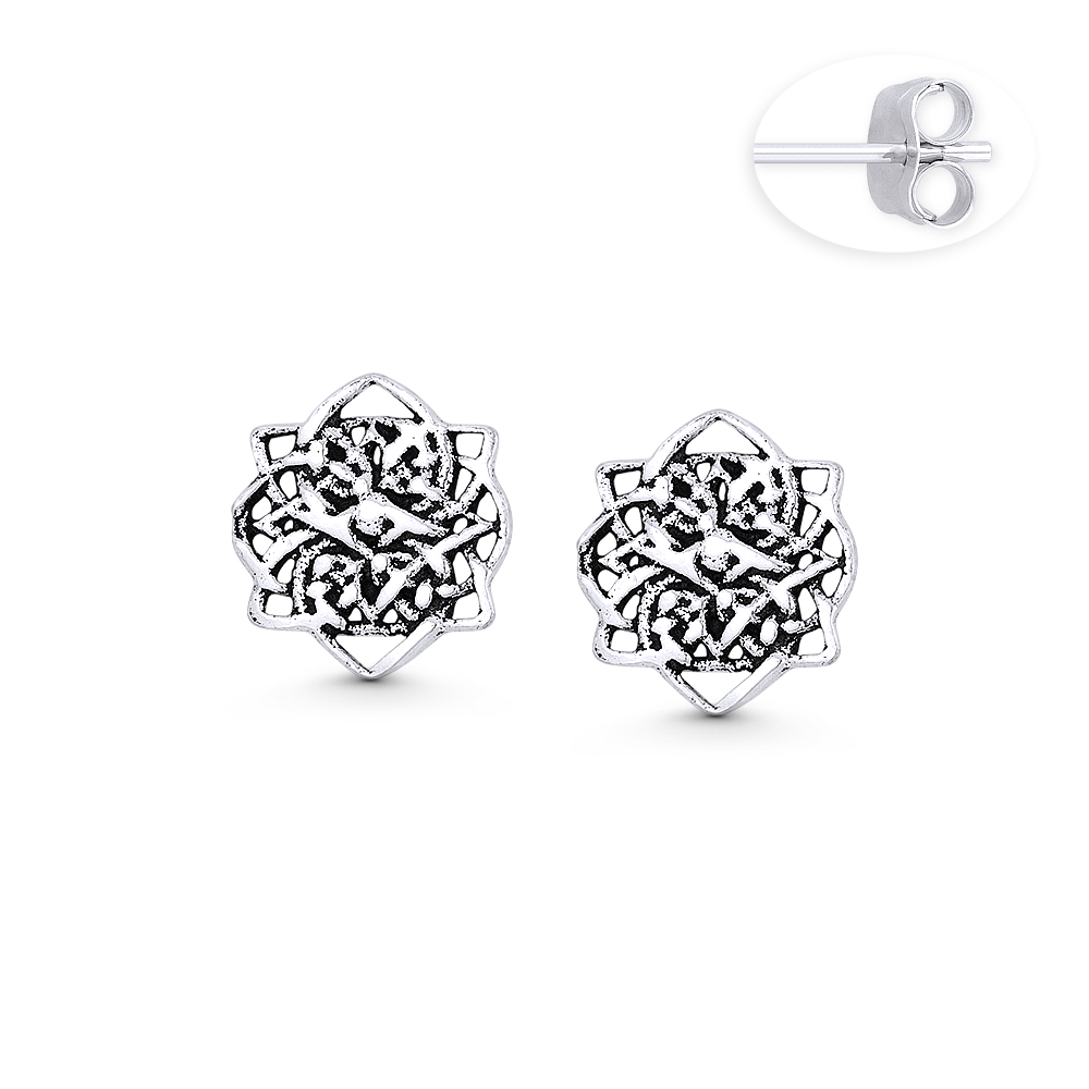 Celtic Flower Irish Charm 10x9mm Stud Earrings in Oxidized .925 Sterling Silver