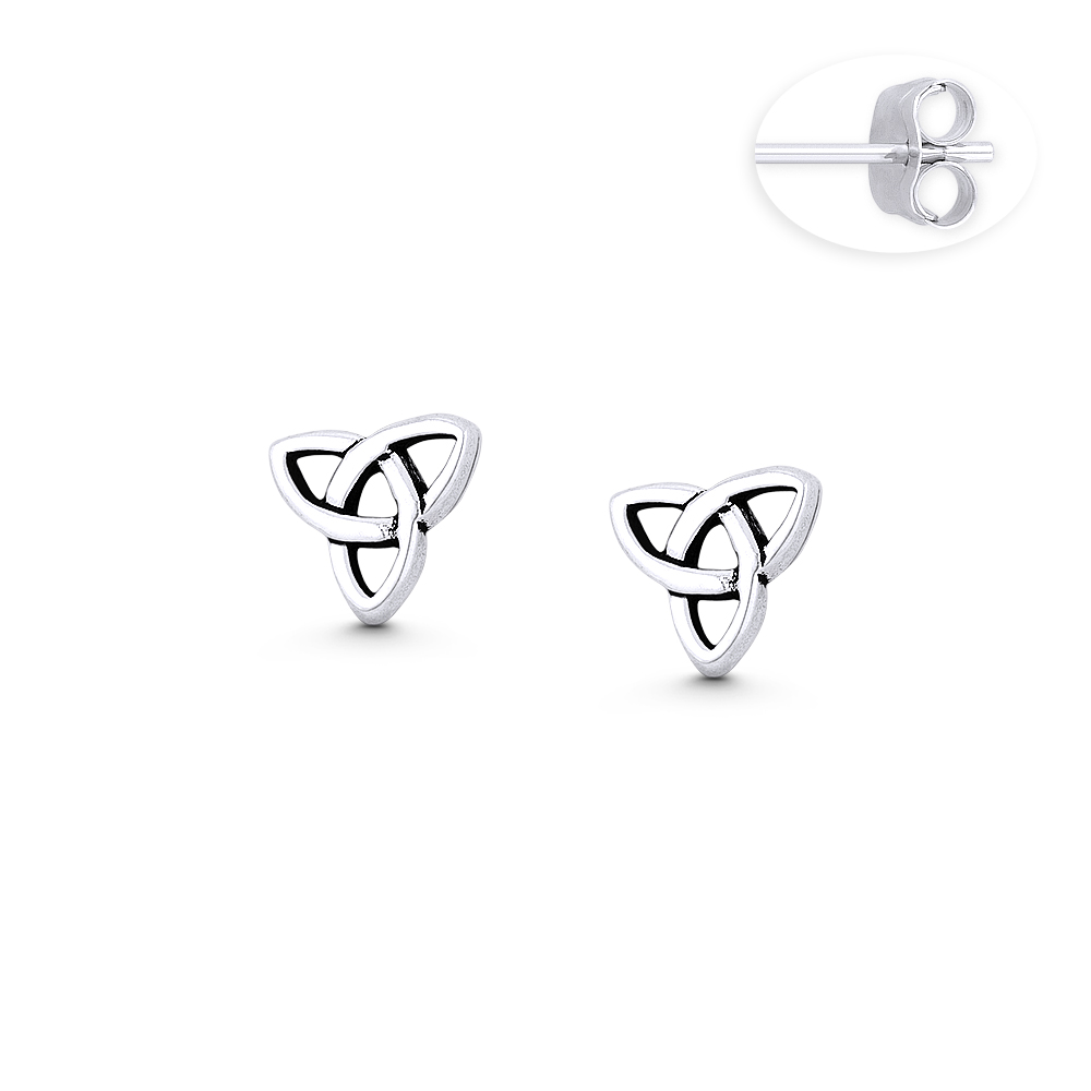 Trinity-Knot / Triquetra Celtic Charm 7mm Stud Earrings in Oxidized .925 Sterling Silver