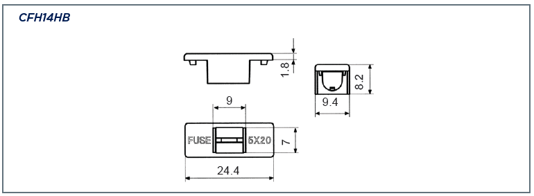 CamdenBoss CFH14&HB Semi Enc. 20mm PCB Fuseholder