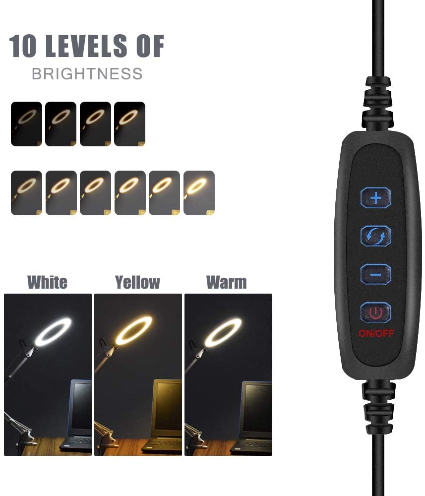 5X Magnifier Glass LED Desk Lamp With Light Stand Clamp Beauty Magnifying Lamp