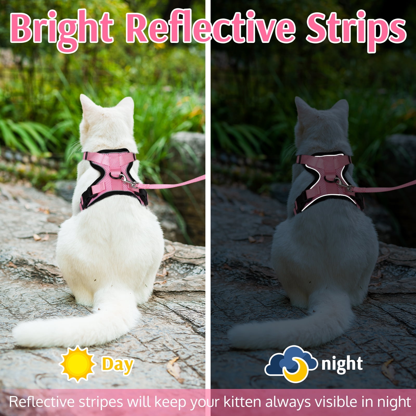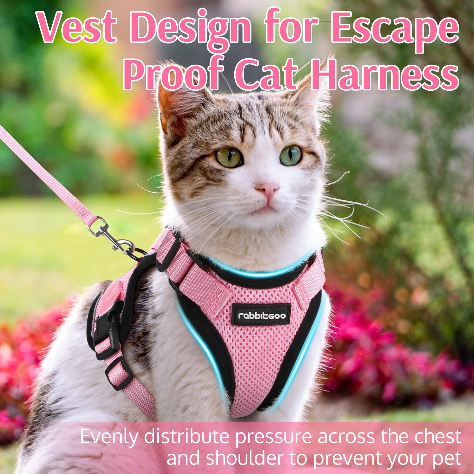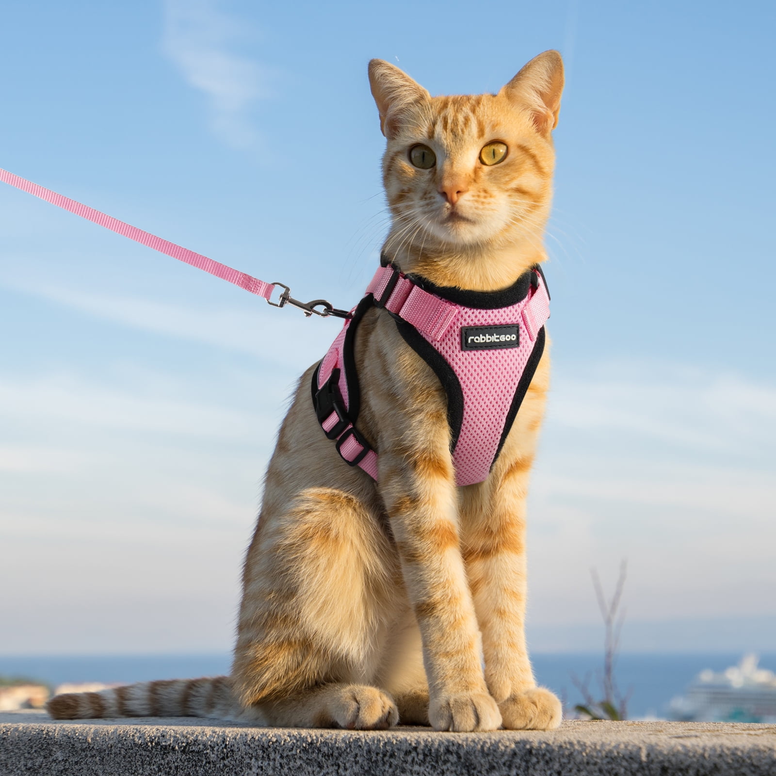 Rabbitgoo Escape Proof Harness with Leash Set for Small Cats - Now, your indoor cat can bravely explore the outdoor world with the maximum comfort and safety. Placing a harness on your cat is not only ideal for walking, exercising, or going on a trip, but it's also a great idea any time you’re taking your sensitive kid to an unfamiliar place, like the vet or groomer. The harness is made of premium pet-safe materials, so your cat will wear it like a champ. All of the features are thoughtfully designed for a secured and comfortable wearing experience.