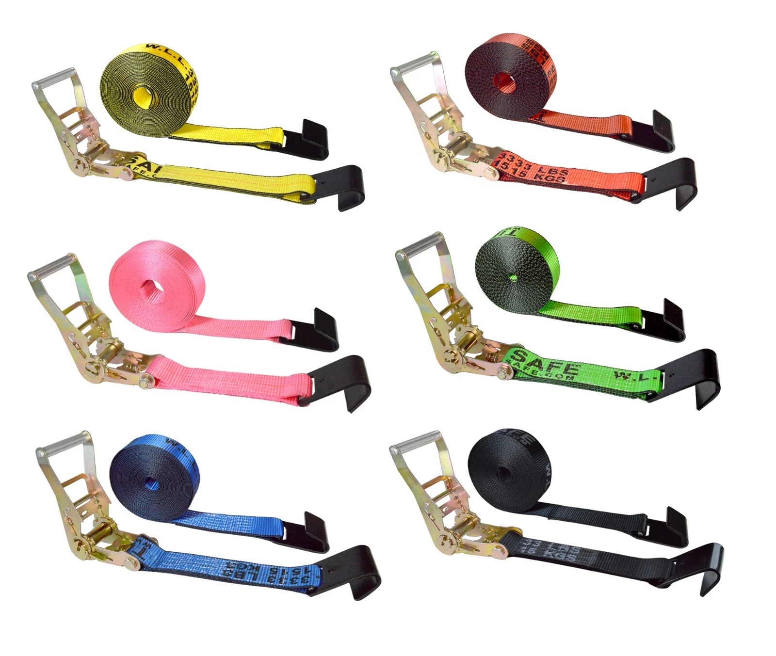 Our Strong Mega Caro Control Ratchet with flat hooks has Industrial Grade Webbing- High tensile polyester tie-down webbing!