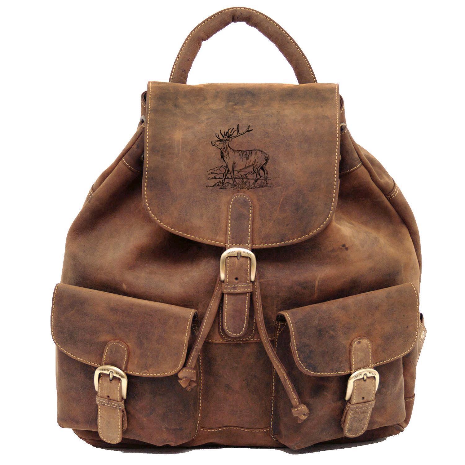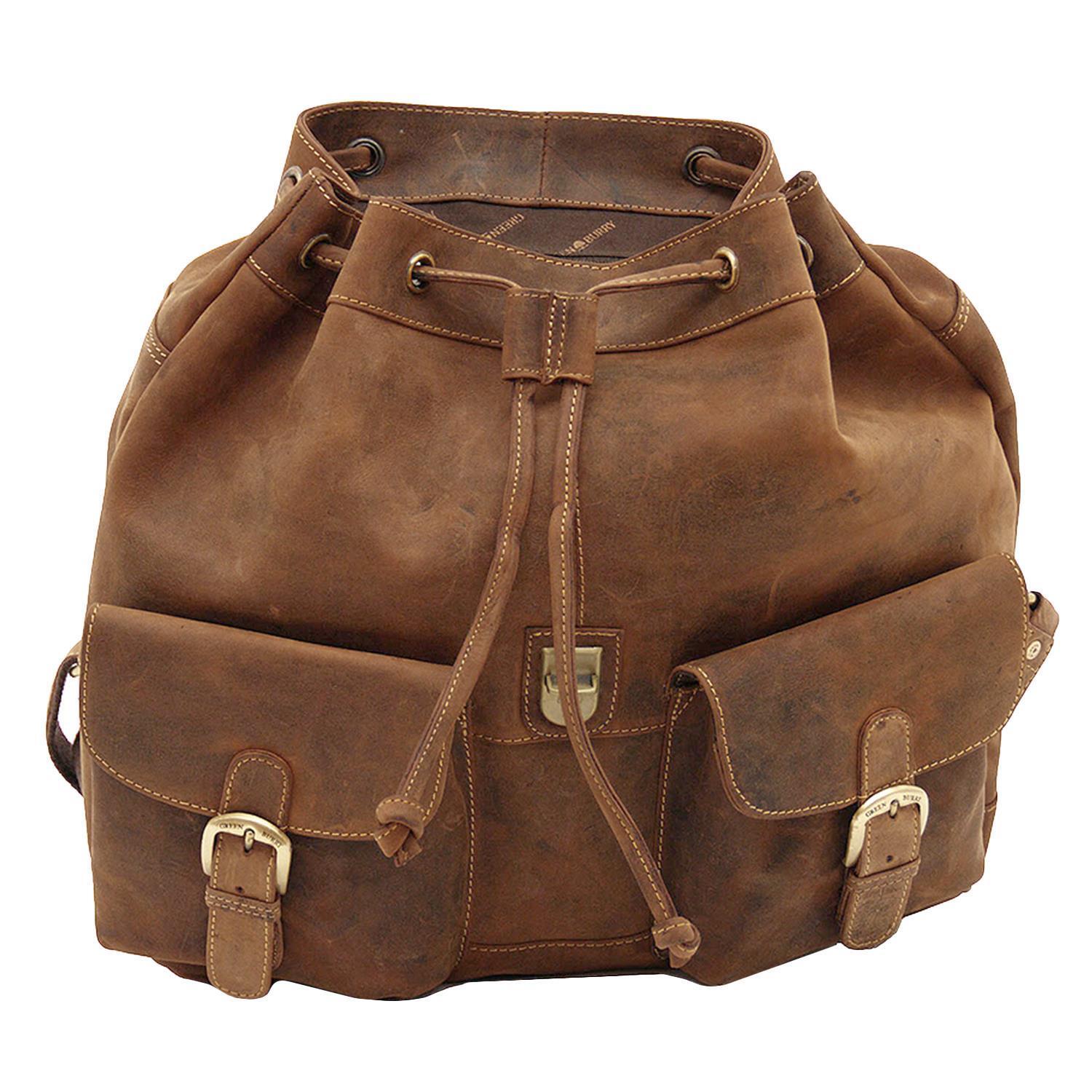 Der Greenburry Rucksack wurde aus einem hochwertigen Leder in einem schönen Braun gefertigt. Dadurch präsentiert sich das Modell 1711 in einem schönen rustikalen Look. Aber nicht nur optisch macht die Tasche eine tolle Figur. Auch hinsichtlich des Stauraums hat der Rucksack einiges zu bieten. Im großen Hauptfach lassen sich somit eine Menge Sachen unterbringen. Diverse kleinere Fächer ermöglichen zusätzlichen Platz für kleinere Gegenstände. Mit einem Leder-Zugband sowie einem Steckschloss lässt sich der Überschlag anschließend sicher fixieren. Somit kann ganz einfach für eine hohe Sicherheit gesorgt werden, wenn die Tasche getragen wird.