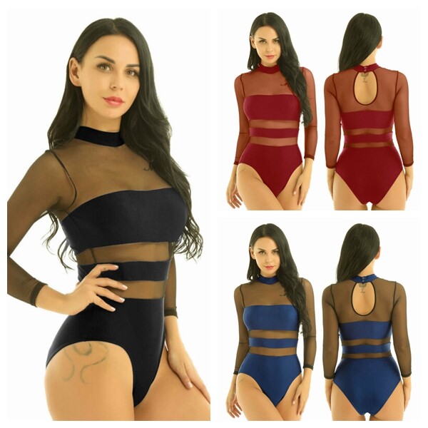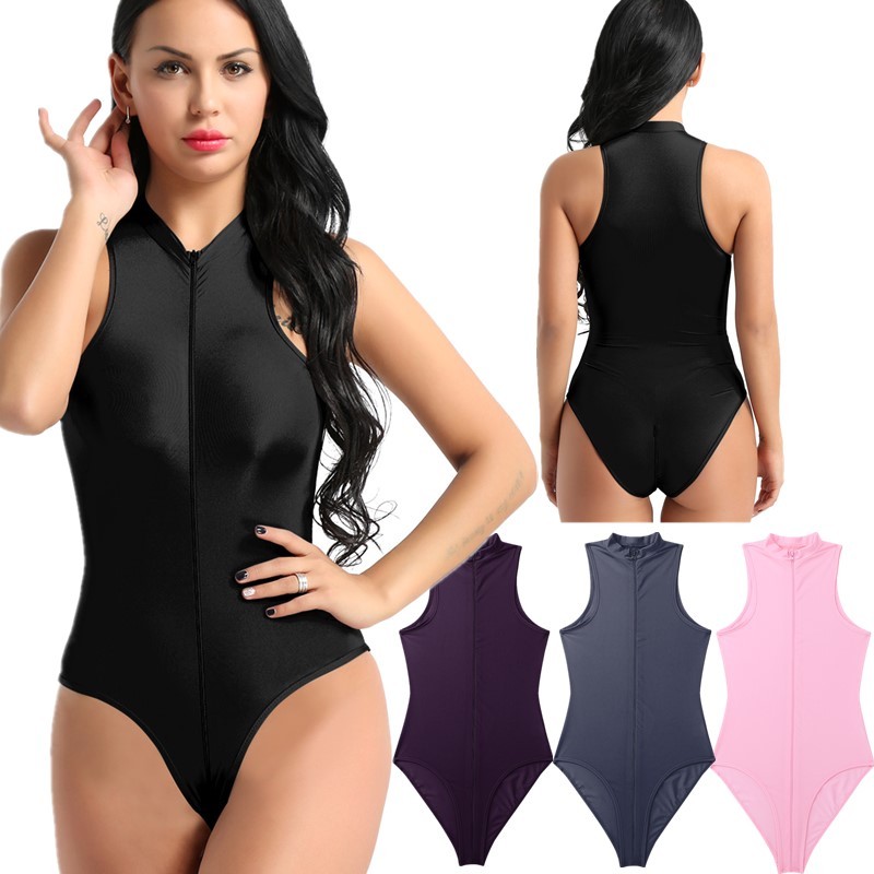 Women ladies one-piece patent leather leotard bodysuit, wet look appearance.