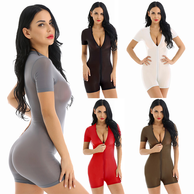 Women’s erotic hot one-piece patent leather leotard bodysuit lingerie, wet look appearance.