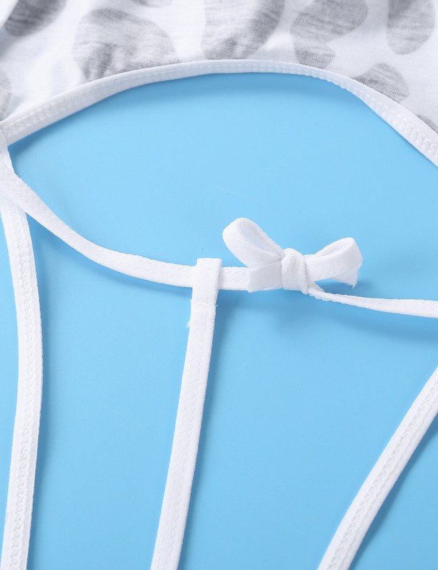 See-through sheer mesh design, halter neck with spaghetti shoulder straps tie at back, backless and waist cut out, high cut legs.