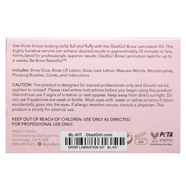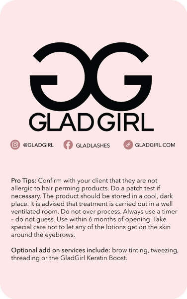 Transform those brows with the GladGirl® Brow Lamination Kit. Eyebrow lamination is an alternative to brow extensions. Bold, full and fluffy eyebrows are only moments away with this highly lucrative service that can achieve superior results in only 20 minutes, or less!