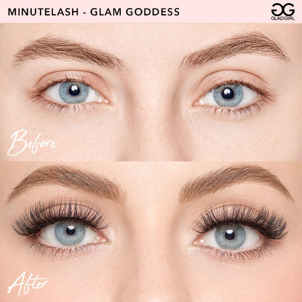 GladGirl MinuteLash is a new, easy way to achieve that professional lash look on your own. These hybrid lashes combine the best of flare and strip lashes. Easy to apply, these revolutionary lashes will have you lash-ready in a Minute. The Glam Goddess style is the right choice if you're wanting to add more glamour to your life. The MinuteLash is split into 4 different sections, one for each eye. This makes for an easy hold in your hand with the application tool and simple to apply to your natural lash line. You can customize your look using the 4 different sections. You can simplify your look with less, or go all out and try all 4 sections at once! The kit comes ready with applicator and GladGirl Strip & Flare Lash Lock Glue. This glue will extend the hold of GladGirl MinuteLash, providing an amazing hold for up to 5 days. MinuteLash can be easily removed with our Make-Up Remover Wipes. This adhesive can be uséd by both professionals and non-professionals.(This adhesive contains latex, so be sure to check for latex sensitivity before use). DIY lashes in a minute with GladGirl MinuteLash! Also available in NATURAL look.