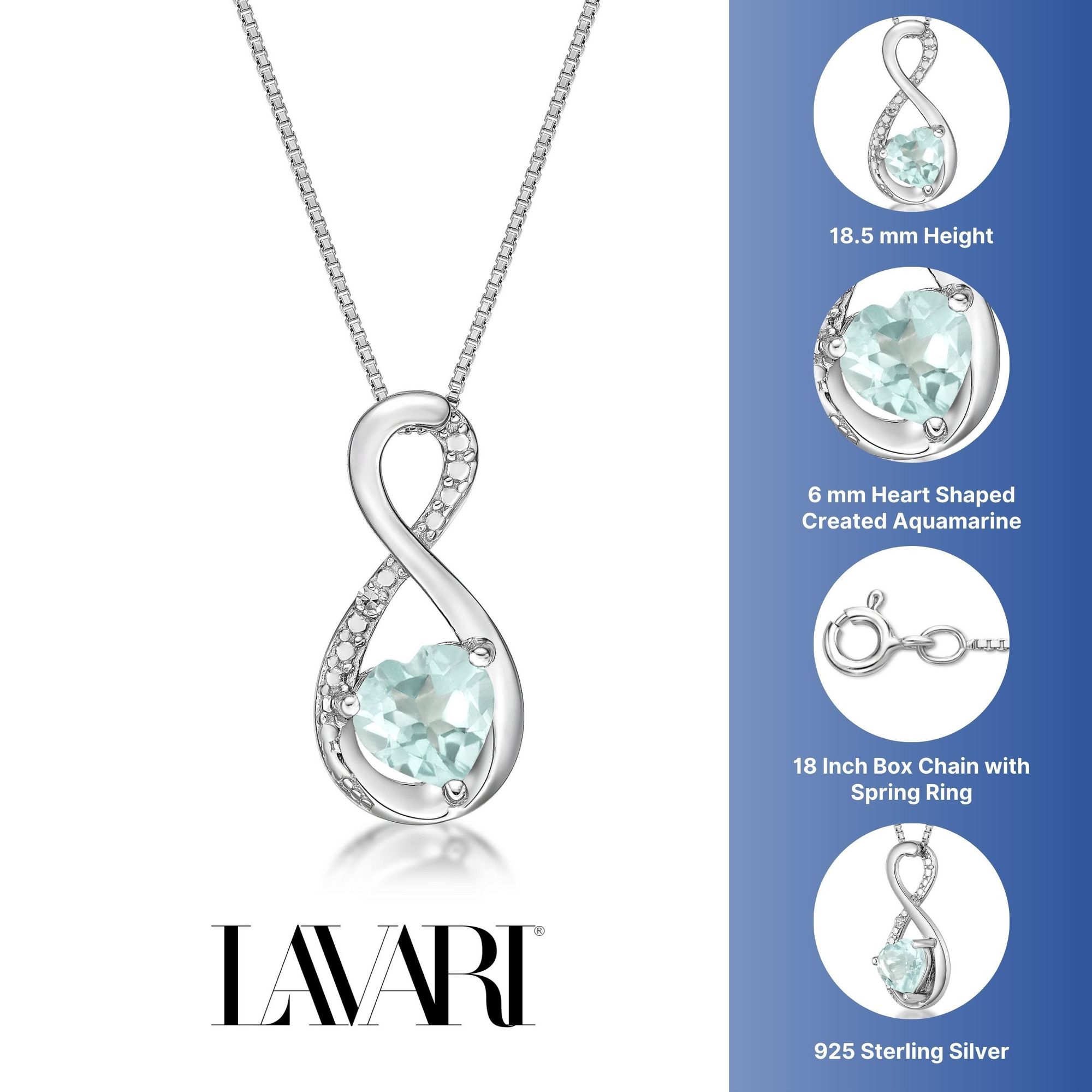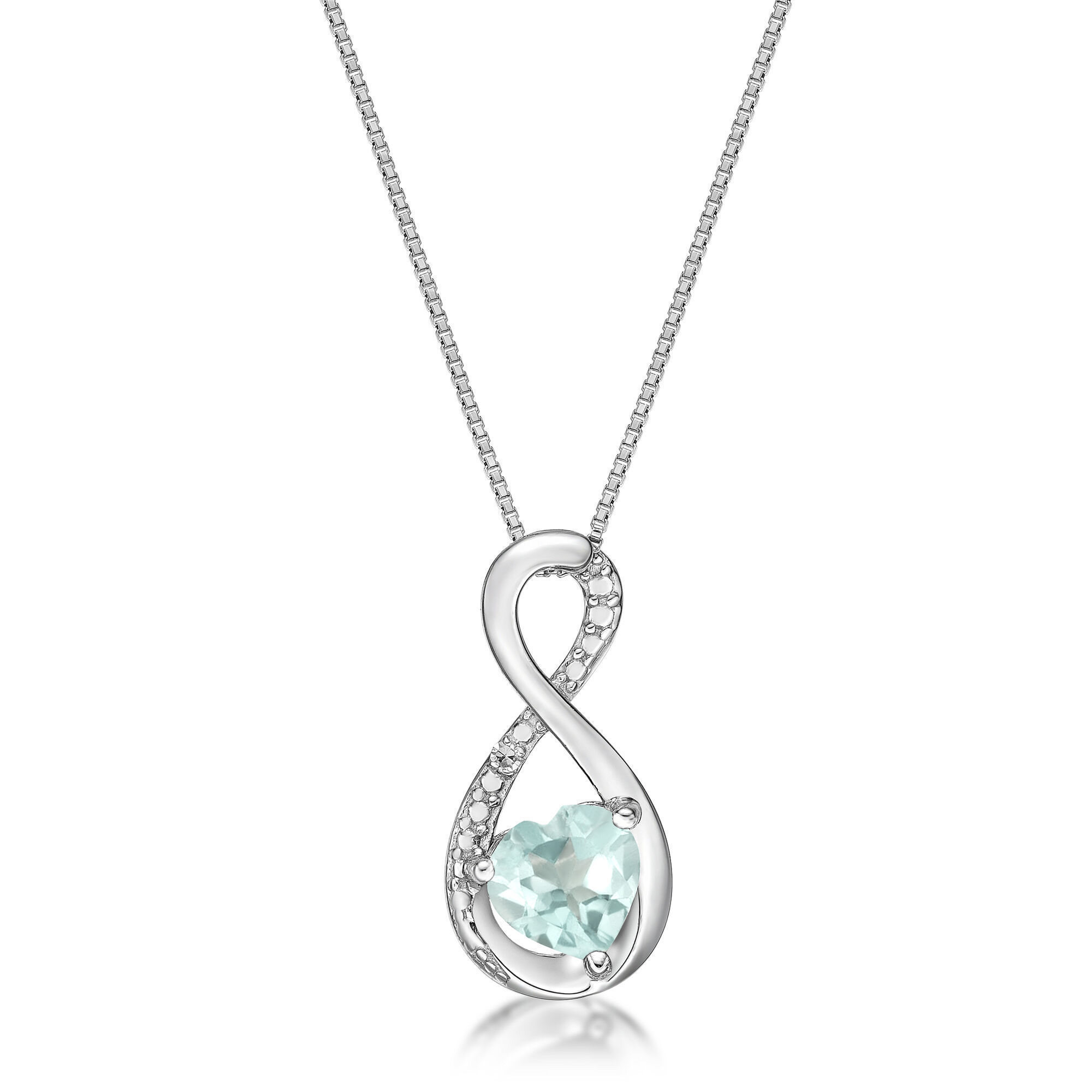 Sterling Silver Necklace w/ Created Aquamarine Heart Pendant with Diamond Accent