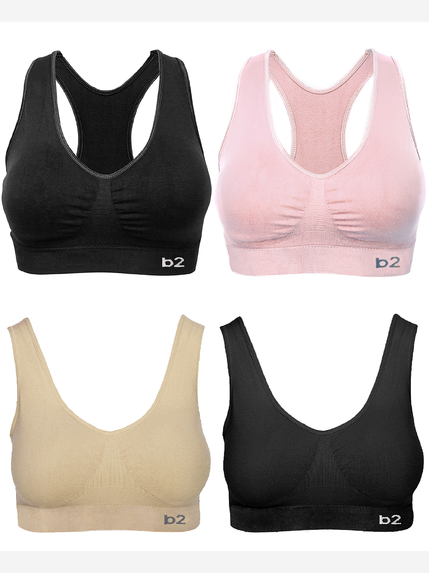 B2BODY Women's Seamless Sports Bra 2 Racerback and 2 Basic Bras