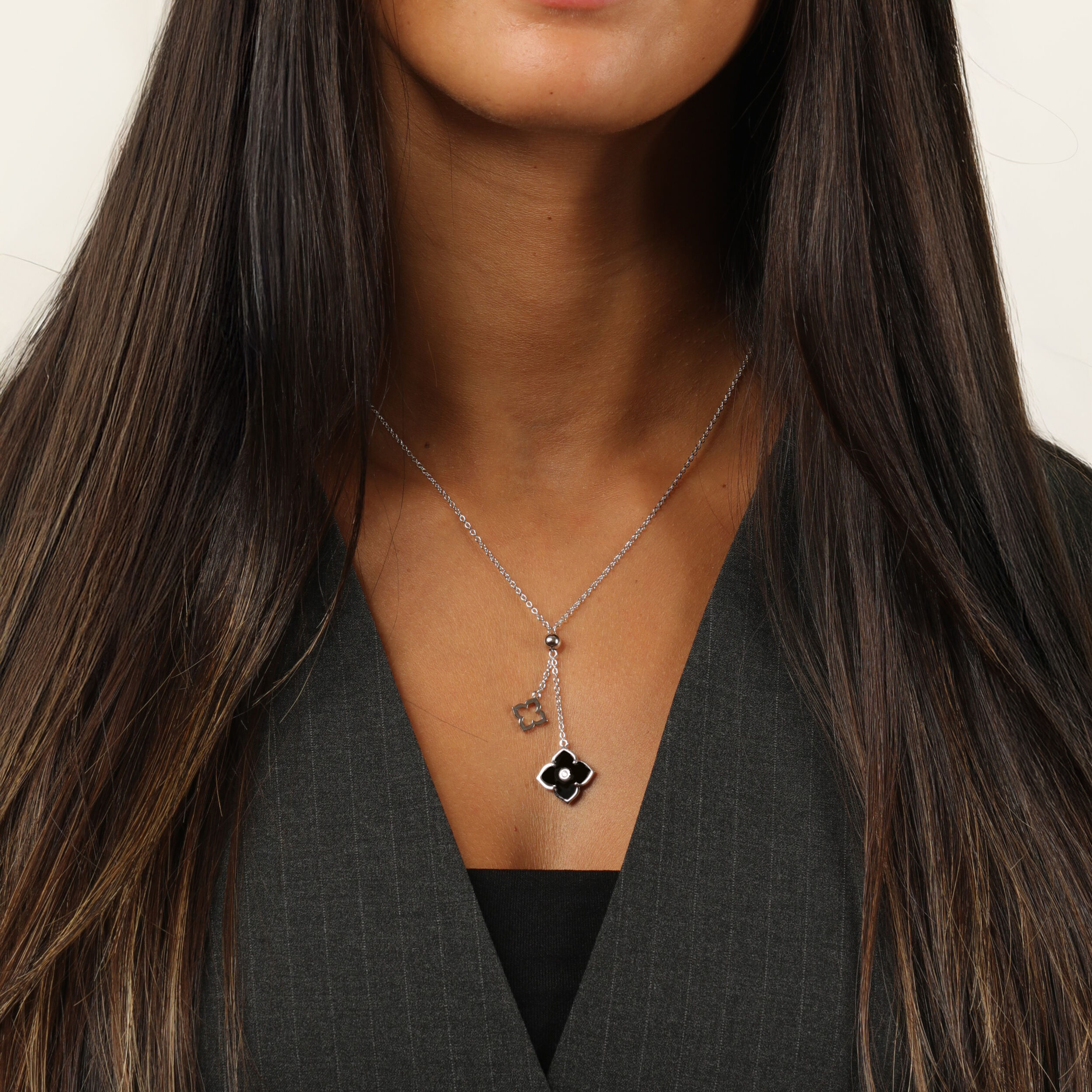 Elevate your style with our Black Onyx Double Flower Pendant Necklace. Made with high-quality 925 sterling silver and featuring a stunning black onyx double flower design, this necklace is a true statement piece that will leave you feeling elegant and confident. The adjustable cable chain allows for a customized fit, while the lobster claw clasp ensures a secure and comfortable wear. Whether you're dressing up for a special occasion or looking to add a touch of glamour to your everyday look, our Black Onyx Double Flower Pendant Necklace is the perfect accessory to elevate your style.