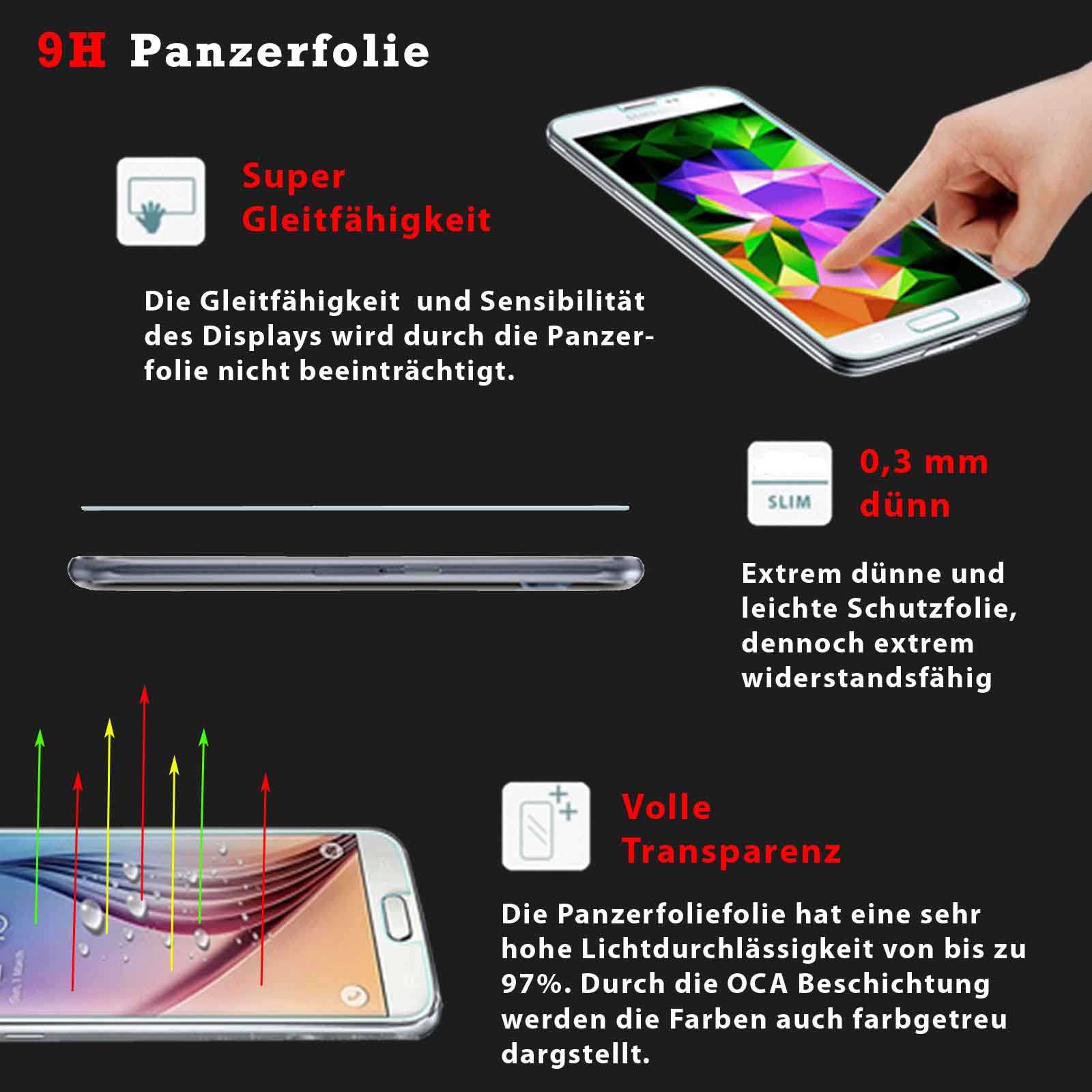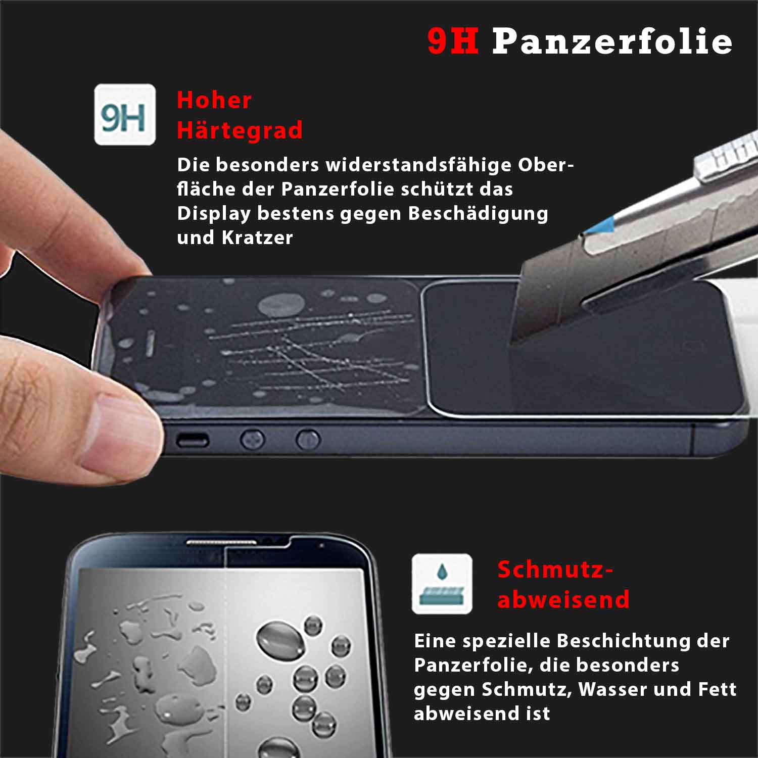TOP-SCHUTZ - Durch die besondere 9H Herstellung ist die Schutzfolie besonders widerstandsfähig und schützt das Display bestens vor Kartzer sowie vor Staub und Schmutzpartikel.