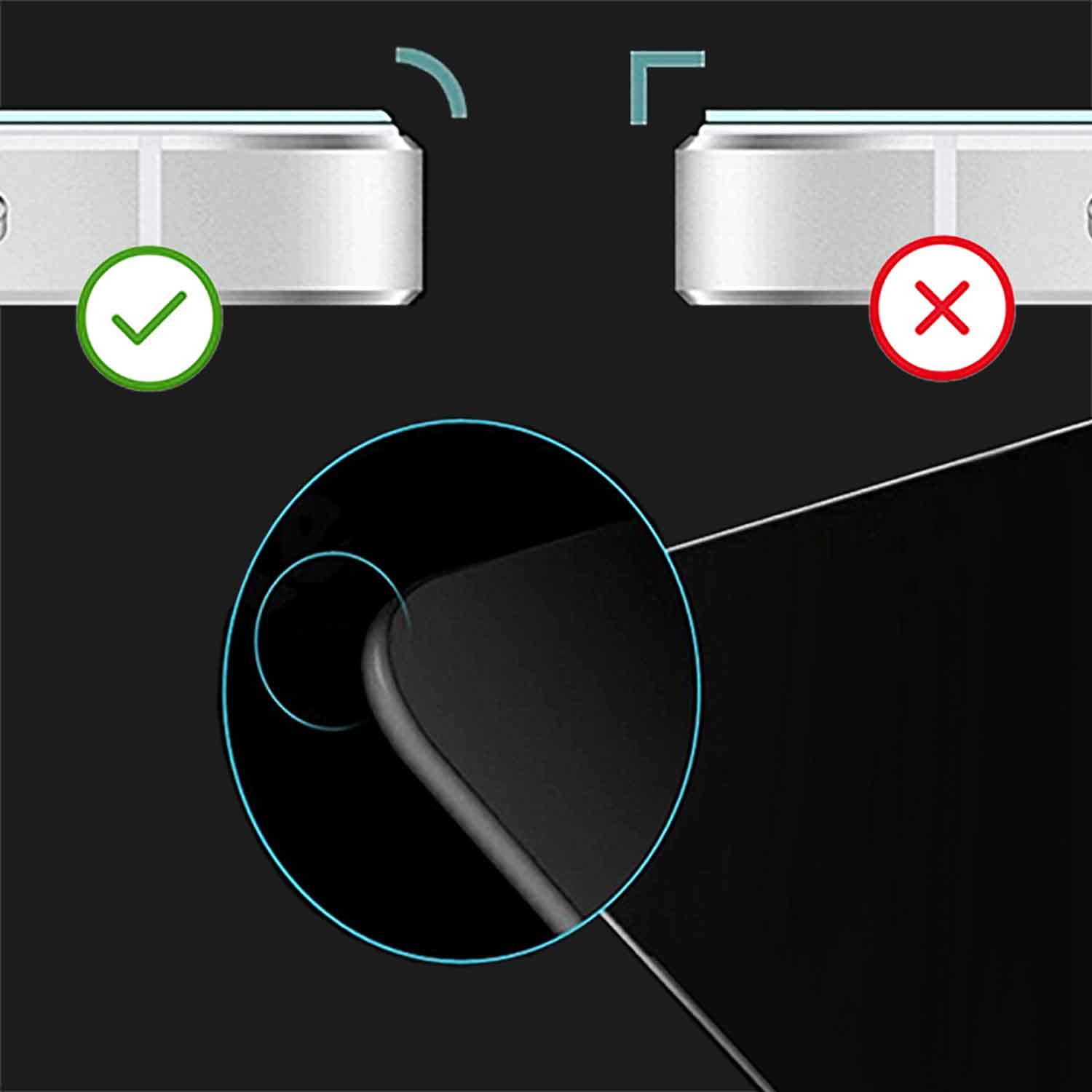 PASSFORM - Bei abgerundeten Displayrändern deckt die Schutzfolie lediglich die flache Ebene des Displays ab, um so eine bestmögliche Haftung der Folie zu gewährleisten.