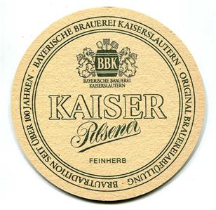 This is a Kaiser Pilsener Beer - 4" round drink coaster. It is two sided, with the same image on both sides.