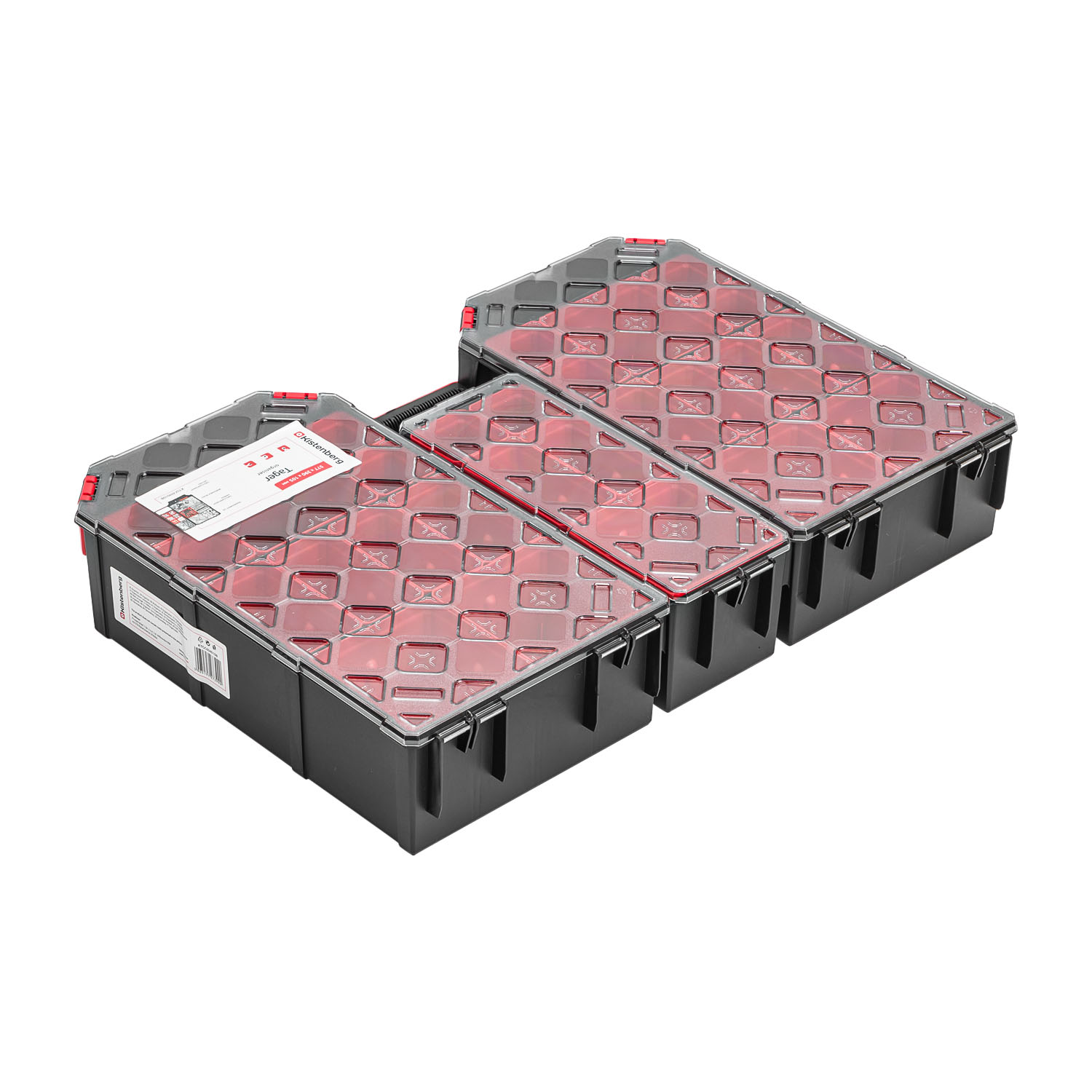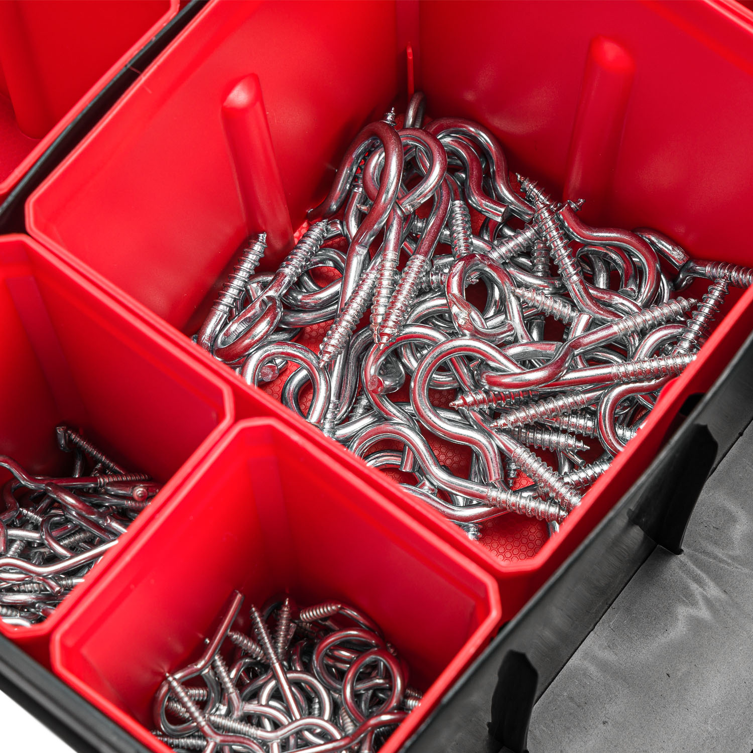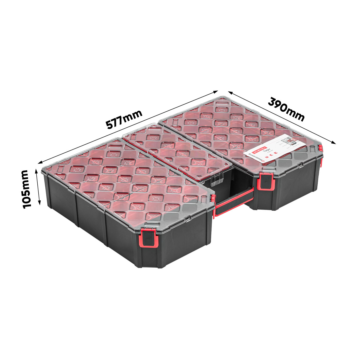 Ausgestattet mit starken Verschlüssen, die einen sicheren Transport gewährleisten und ein versehentliches Öffnen des Organizers verhindern.