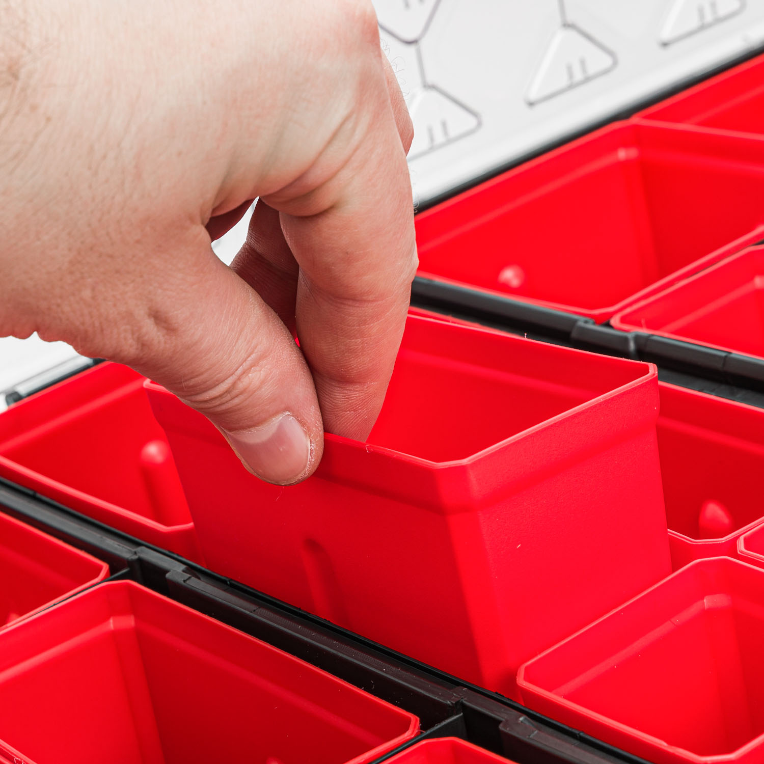 Transparenter Deckel gibt den Blick auf den Inhalt des Organizers frei, ohne dass dieser geöffnet werden muss.
