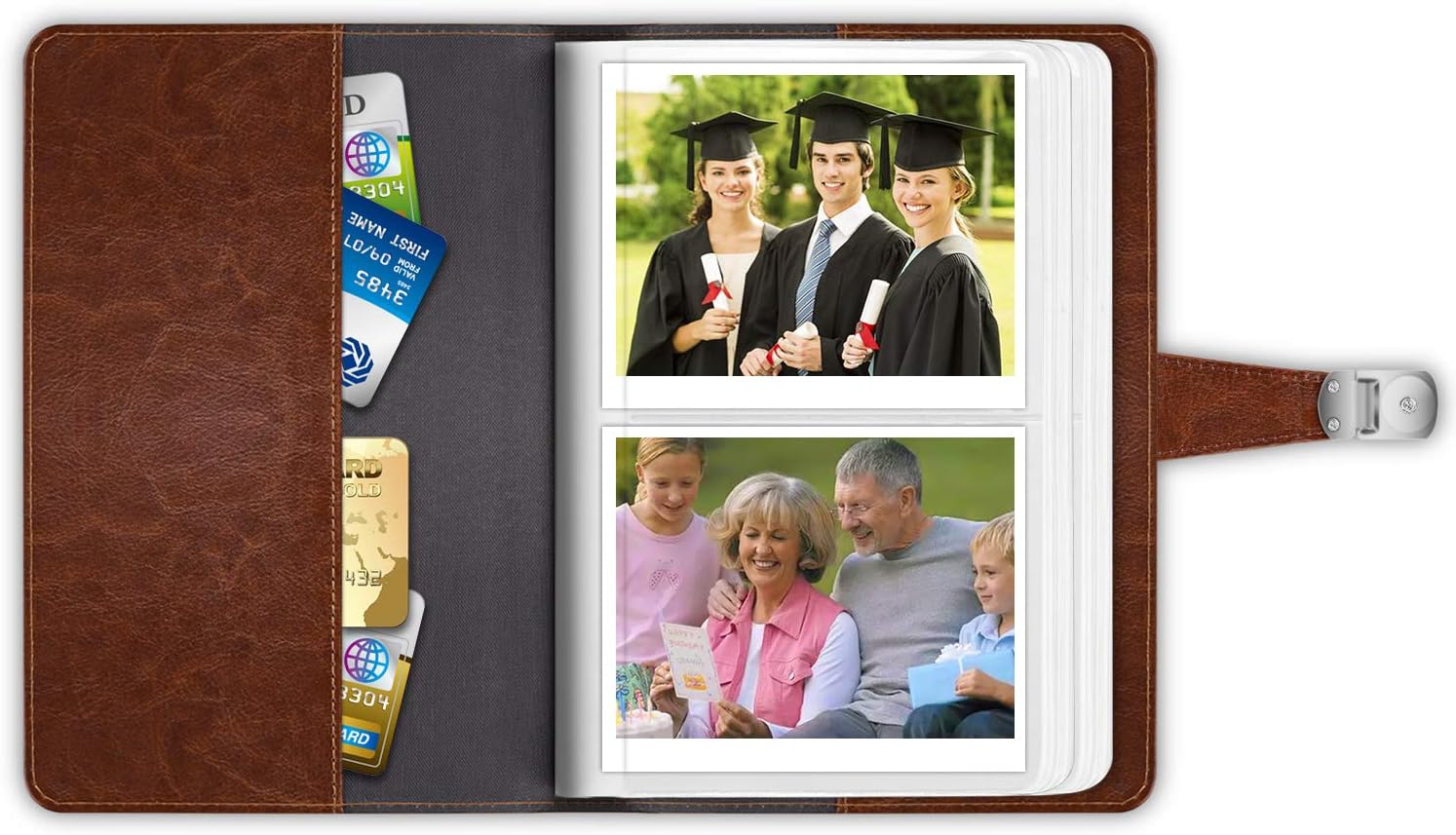 Compatible with photos taken by Fujifilm Instax Wide 300 / Wide 200 Instant Film Camera, Polaroid POP 3x4" Instant Print Digital Camera, Polaroid Originals OneStep 2 / Originals 600 / Polaroid SX70 Camera, Fujifilm FP-100C / FP-3000B Film. This album can also hold credit cards and name cards. [Photo Size: 3.5x4.5 Inch / 9 * 11.5cm].