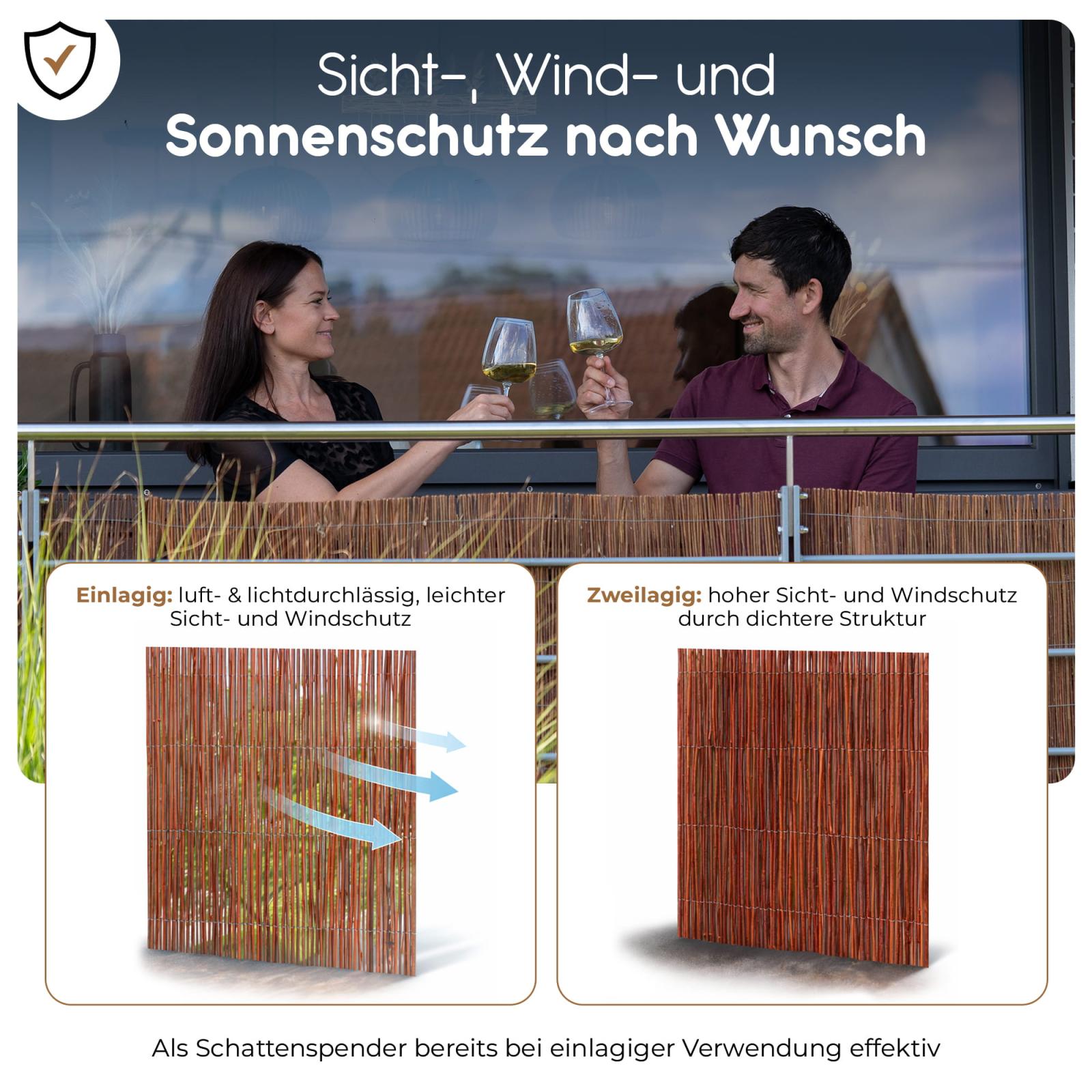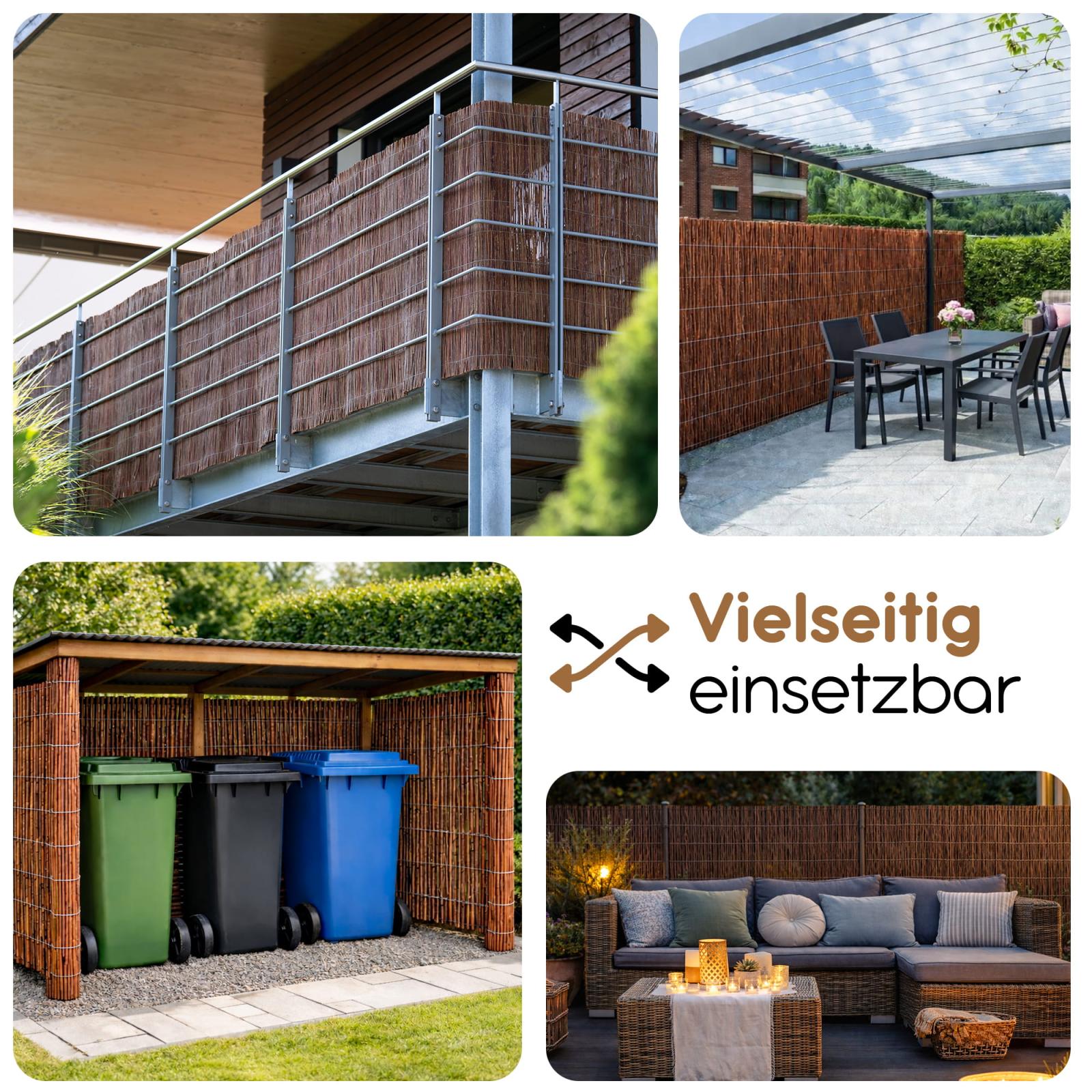 Unsere Weidenzaunmatten bieten optimalen Wind-, Sonnen- und Sichtschutz auf Garten, Balkon und Terrasse