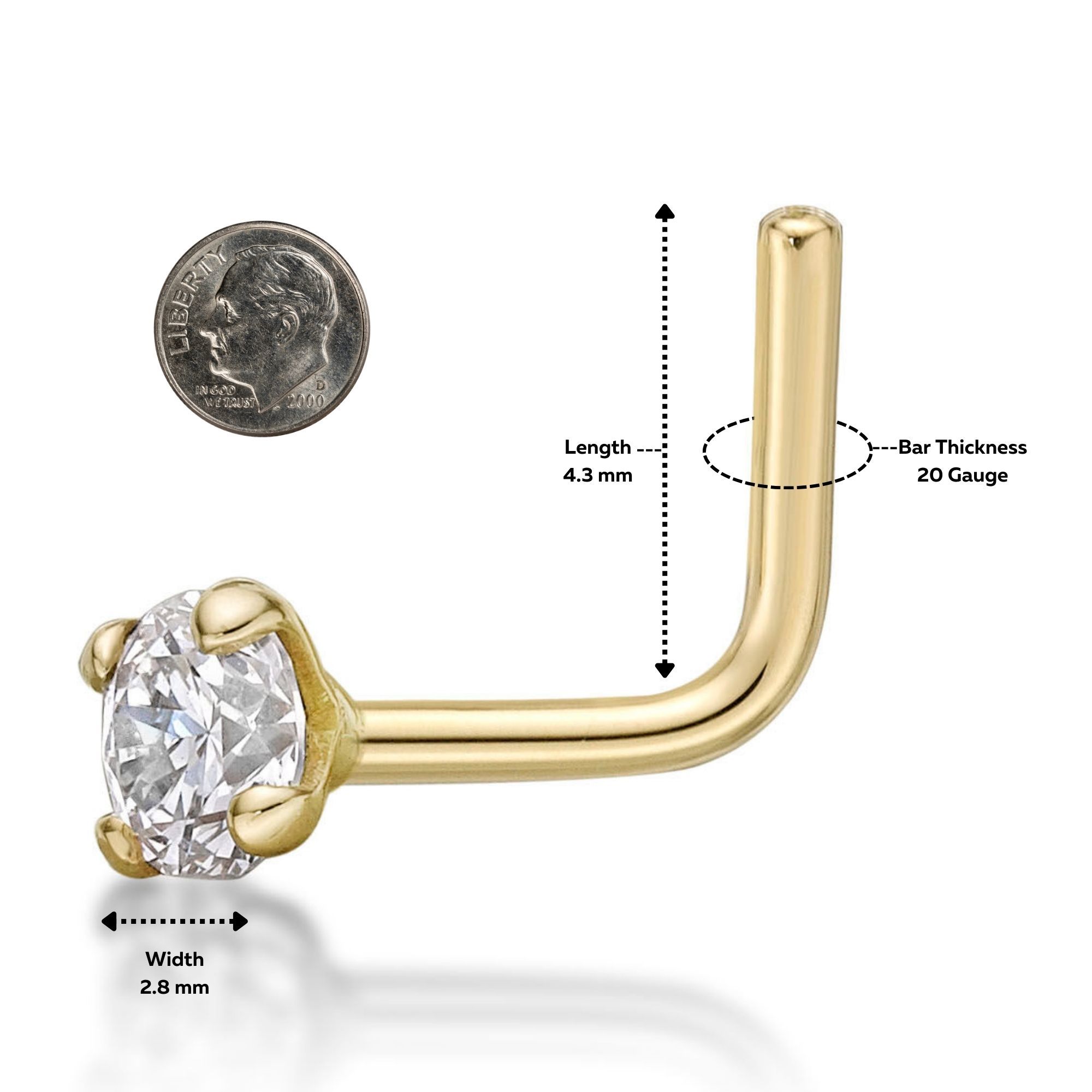 Why wait to add this stunning 20 Gauge 0.07 Carat Lab Grown Diamond L-Shaped Nose Ring in 14k Yellow Gold 2.7 MM to your collection? With its timeless beauty and exceptional craftsmanship, it's a piece that will never go out of style. Treat yourself to a touch of luxury or surprise someone special with a gift that will truly make their day. Don't miss out on owning a timeless piece of jewelry that will elevate your style to new heights. Place your order now and let this nose ring become the centerpiece of your jewelry collection!