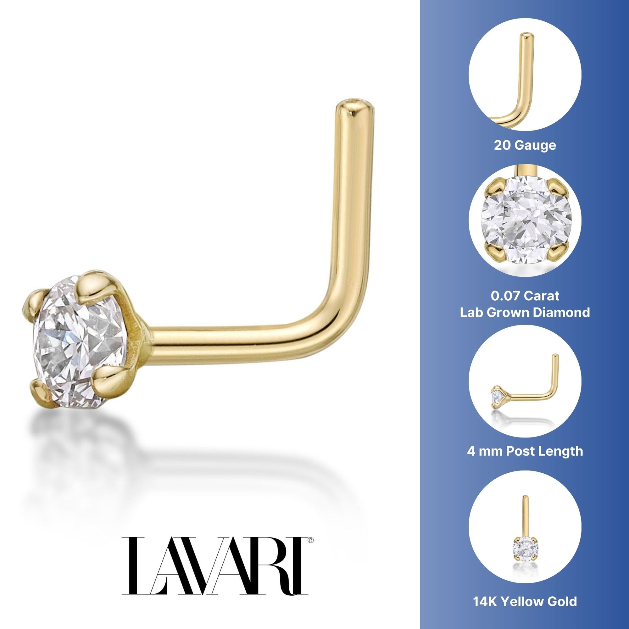 Embrace elegance and sophistication with our 20 Gauge 0.07 Carat Lab Grown Diamond L-Shaped Nose Ring in 14k Yellow Gold 2.7 MM. Order now and let your beauty shine!