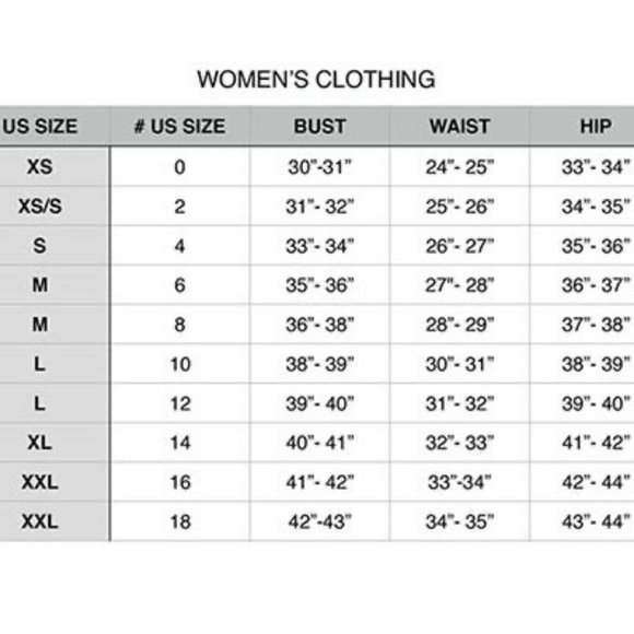 The size chart provided is the U.S standard size chart used by most clothing stores