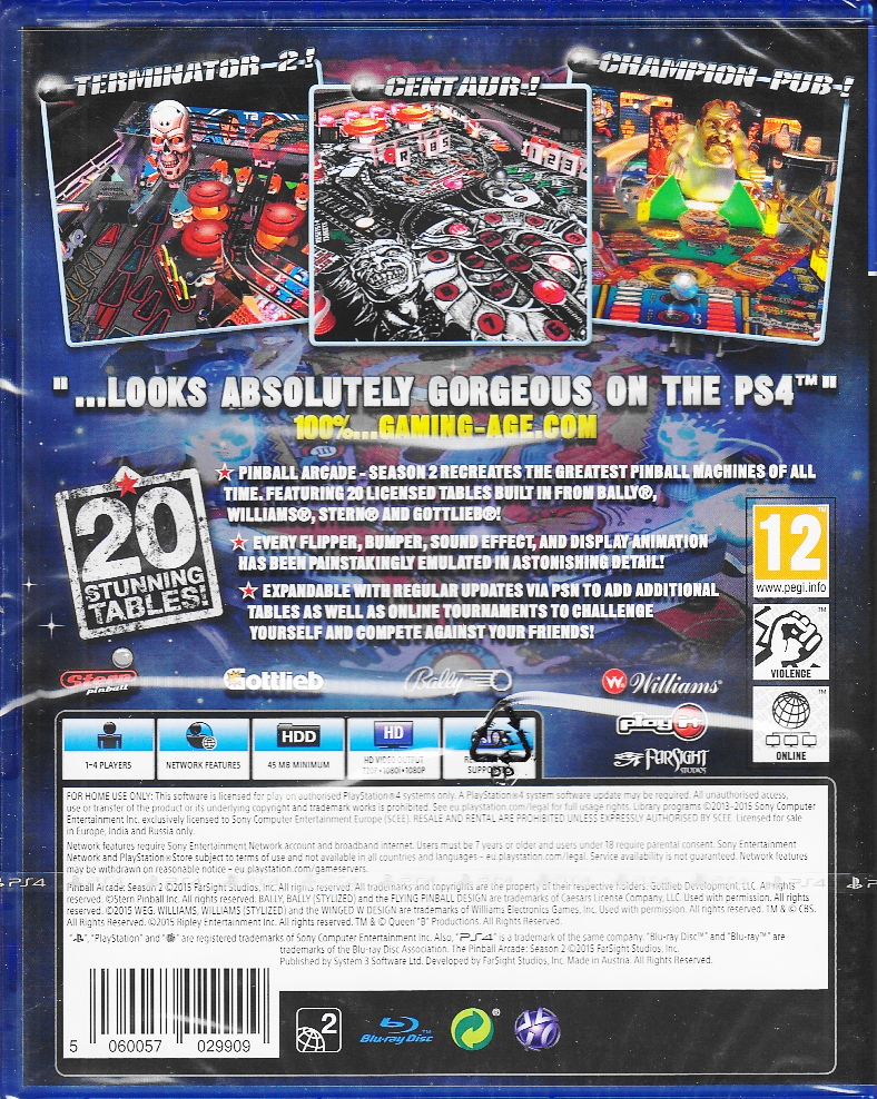 Ein Muss für Flipper-Fans! Mit Pinball Arcade Season 2 erhältst du die Blütezeit der elektronisch-mechanischen Spielhallen für die neueste Konsolengeneration. Auf dich warten 23 legendäre und bis ins kleinste Detail umgesetzte Flipper- Tische mit den unterschiedlichsten Themenwelten. Fotorealistische 3D-Grafiken, Original-Soundeffekte sowie eine tadellose Physik-Simulation garantieren höchst-möglichen Realismus.