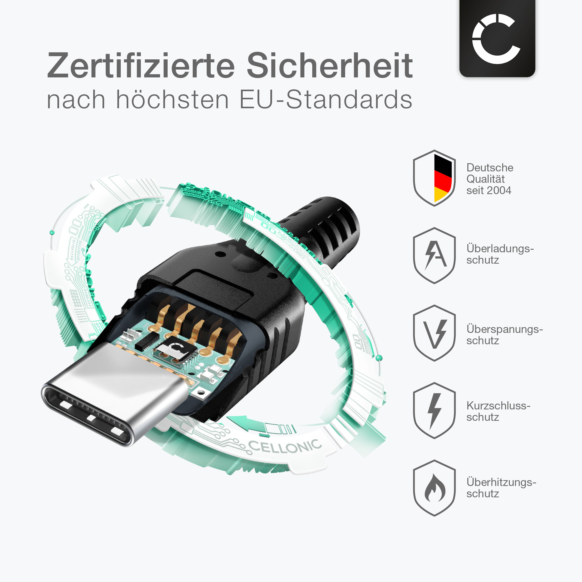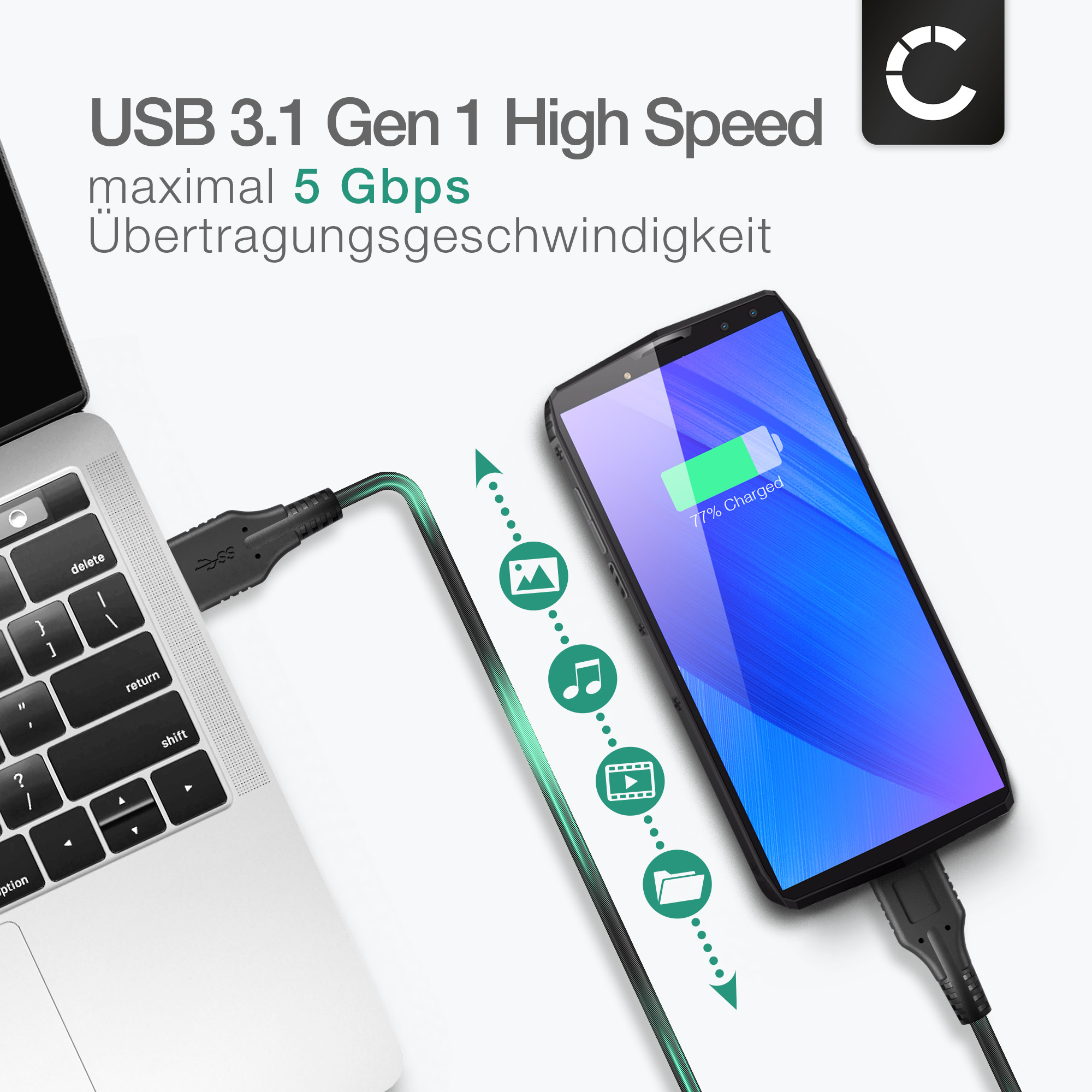 CELLONIC®'s USB Verbindungskabel ist ein Anschlusskabel für Blackview BV9200 Handys / Mobiltelefone und weitere Geräte mit USB C Type C Ladebuchse / Anschluss.