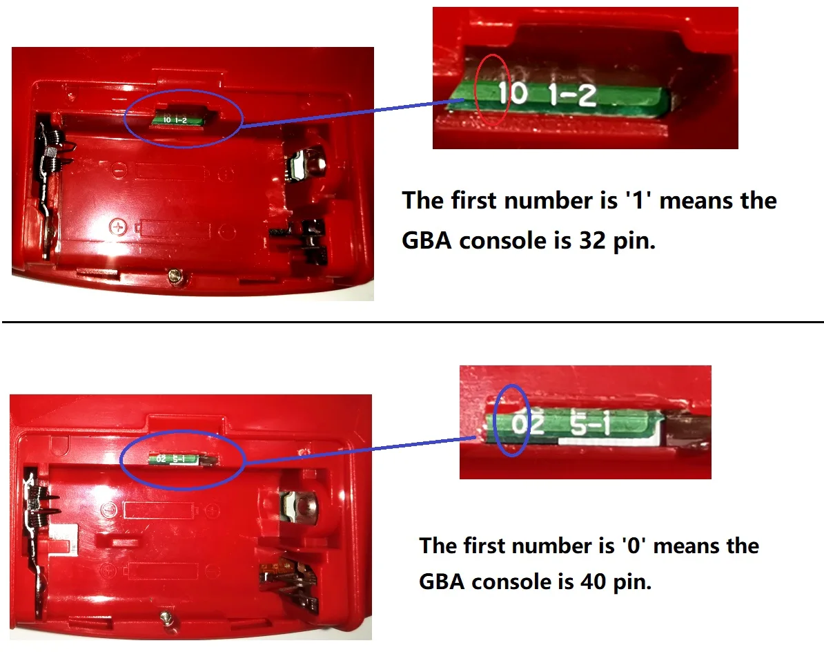 How to distinguish the 32pin GBA and 40pin GBA