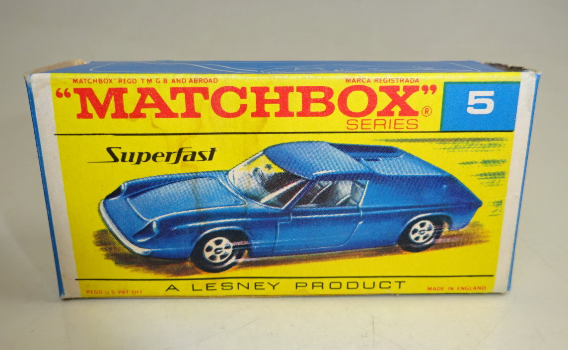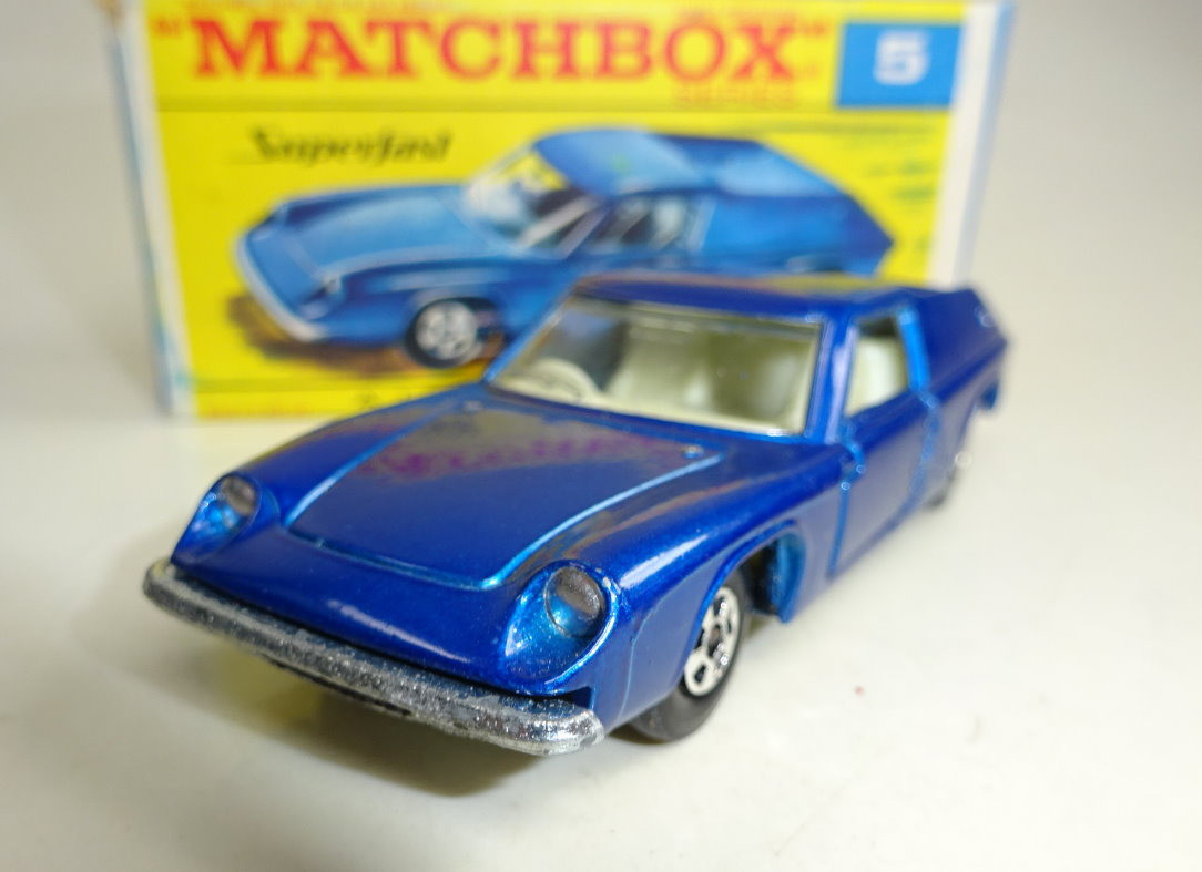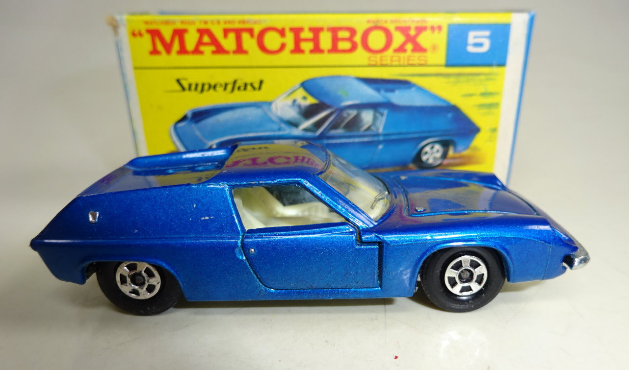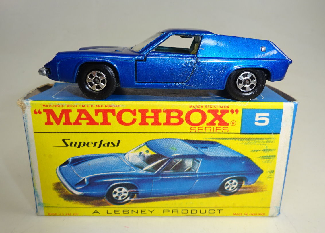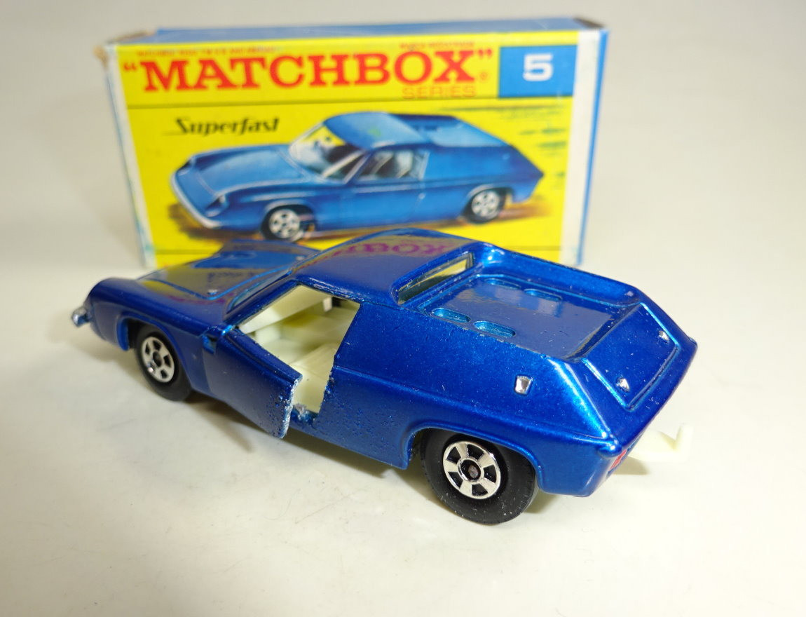 Matchbox Superfast Serie Lesney / Made in England 1969 - 1983 Nummer 5A Lotus Europa Frühe Farbe dunkelblaumetallic, dünne