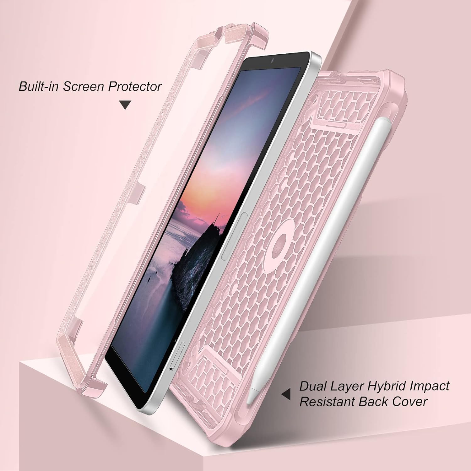 Dual-Layer Full Protection: Military drop tested shock absorption TPU skin with 4 air-cushioned corners protect your iPad from shocks, drops and impacts. Built-in Screen Protector, prevents scratches without sacrificing sensitivity or visibility.