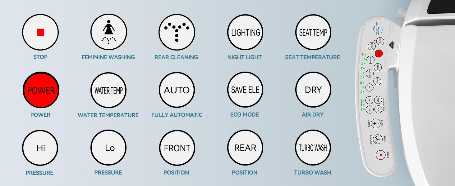 Electric Bidet for Elongated Toilets with Attached Control Panel offers functionality to ensure hygiene, comfort and convenience for all users. Some of its new features are its slim design, automatic deodorization, vortex wash, electronic heated,warm air dryer,rear and front wash,self-cleaning metal nozzle,and a weight capacity of 330 lbs.