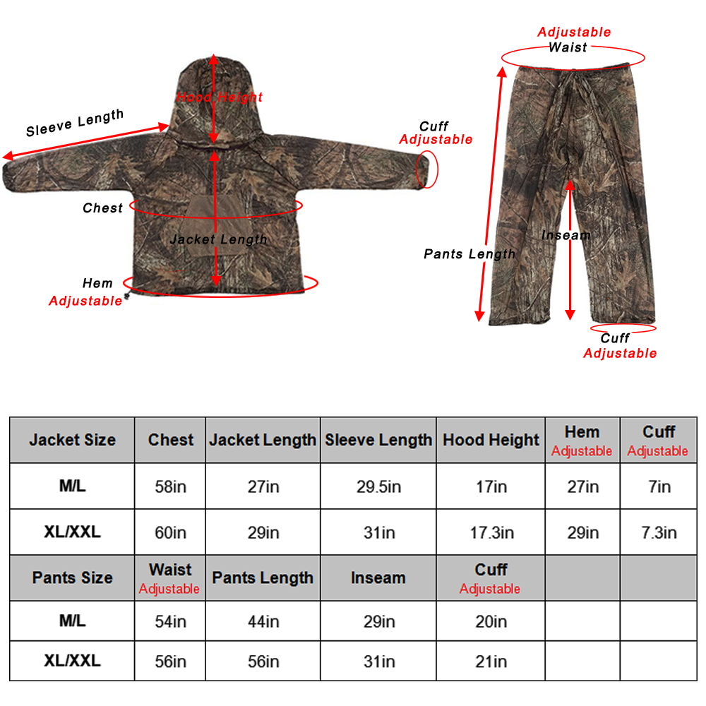 mosquito suit is designed with SUPER2.0 Tree Camo, making it easier for you to stay close to nature.It is not only a set of mosquito suits that can reject bed bugs, also a camouflage suit, but also a fashionable suit.