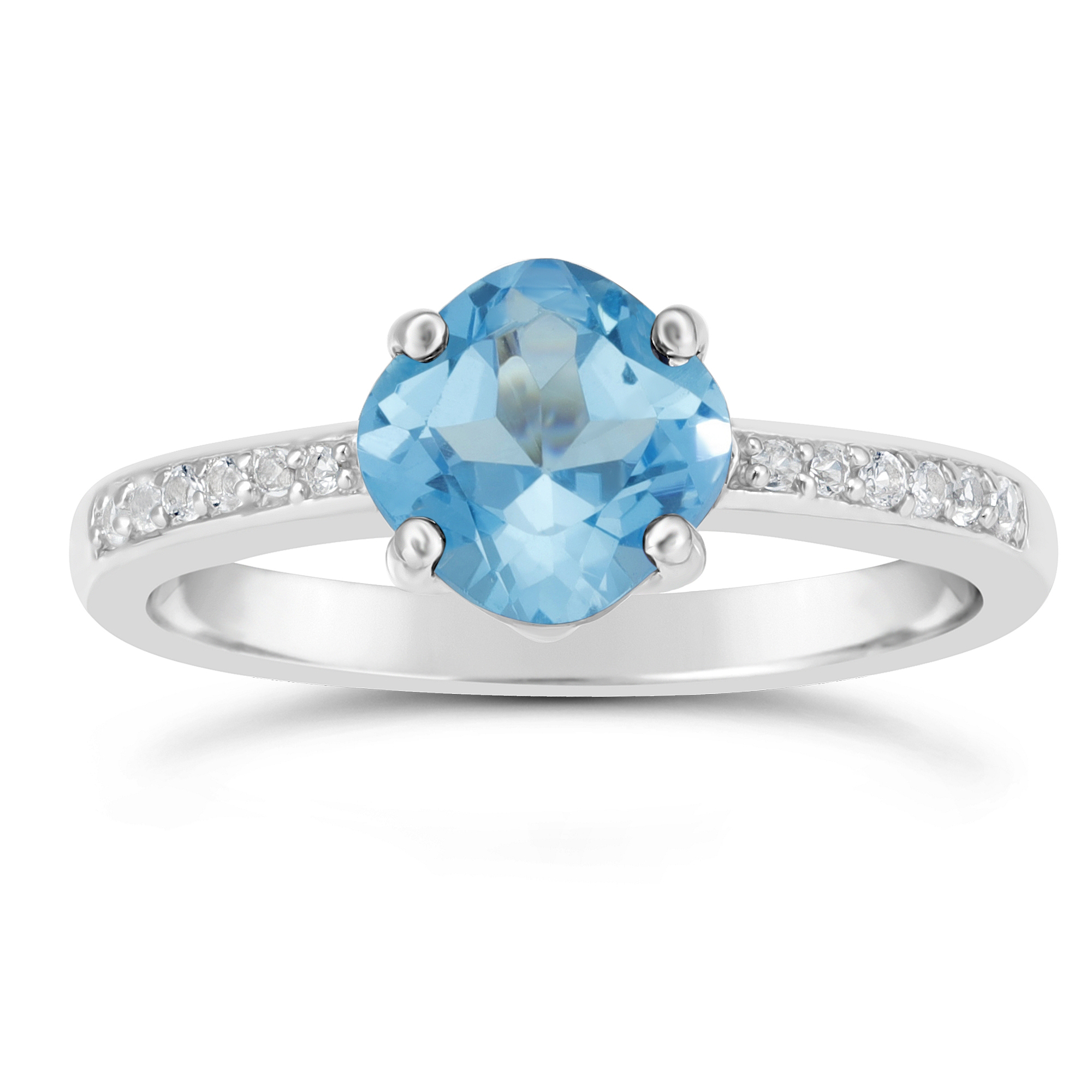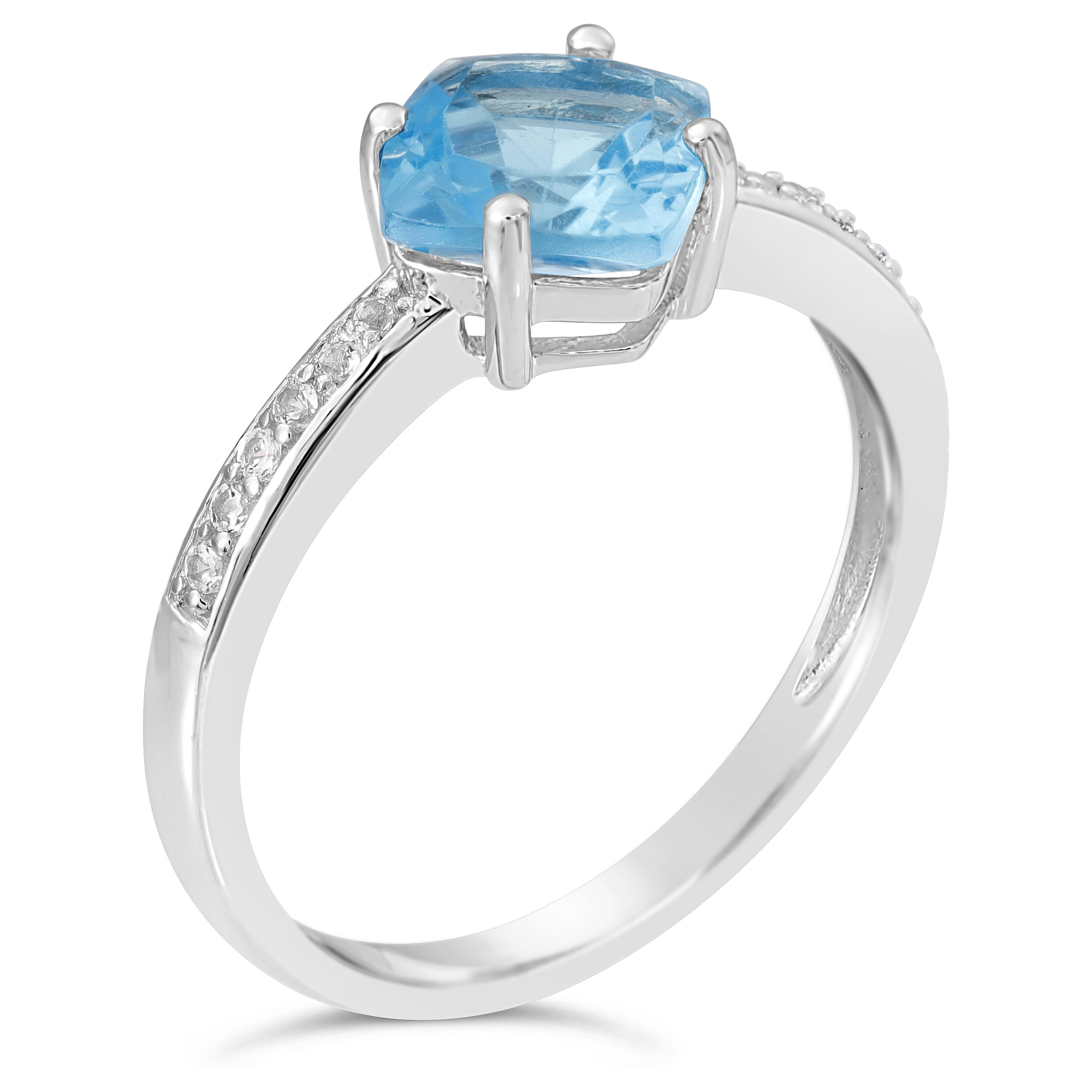 925 Sterling Silver Blue & White Topaz Cushion Statement Ring Jewelry for Women