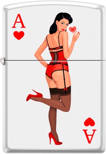 Zippo Ace Of Hearts With Woman White Matte WindProof Lighter