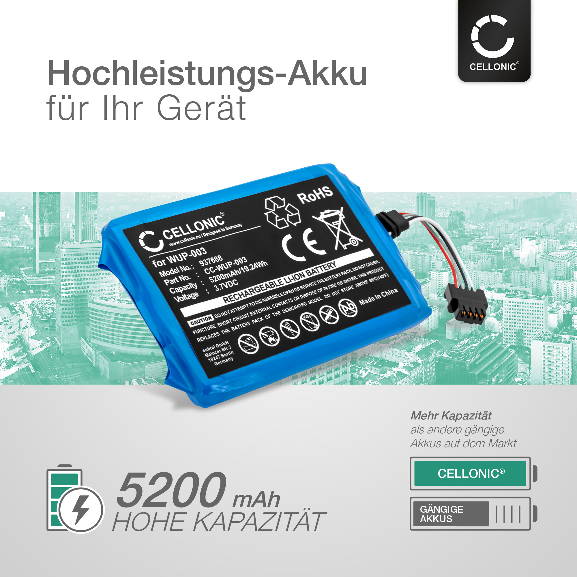 Alternative für / Ersetzt: WUP-003 Originalakku