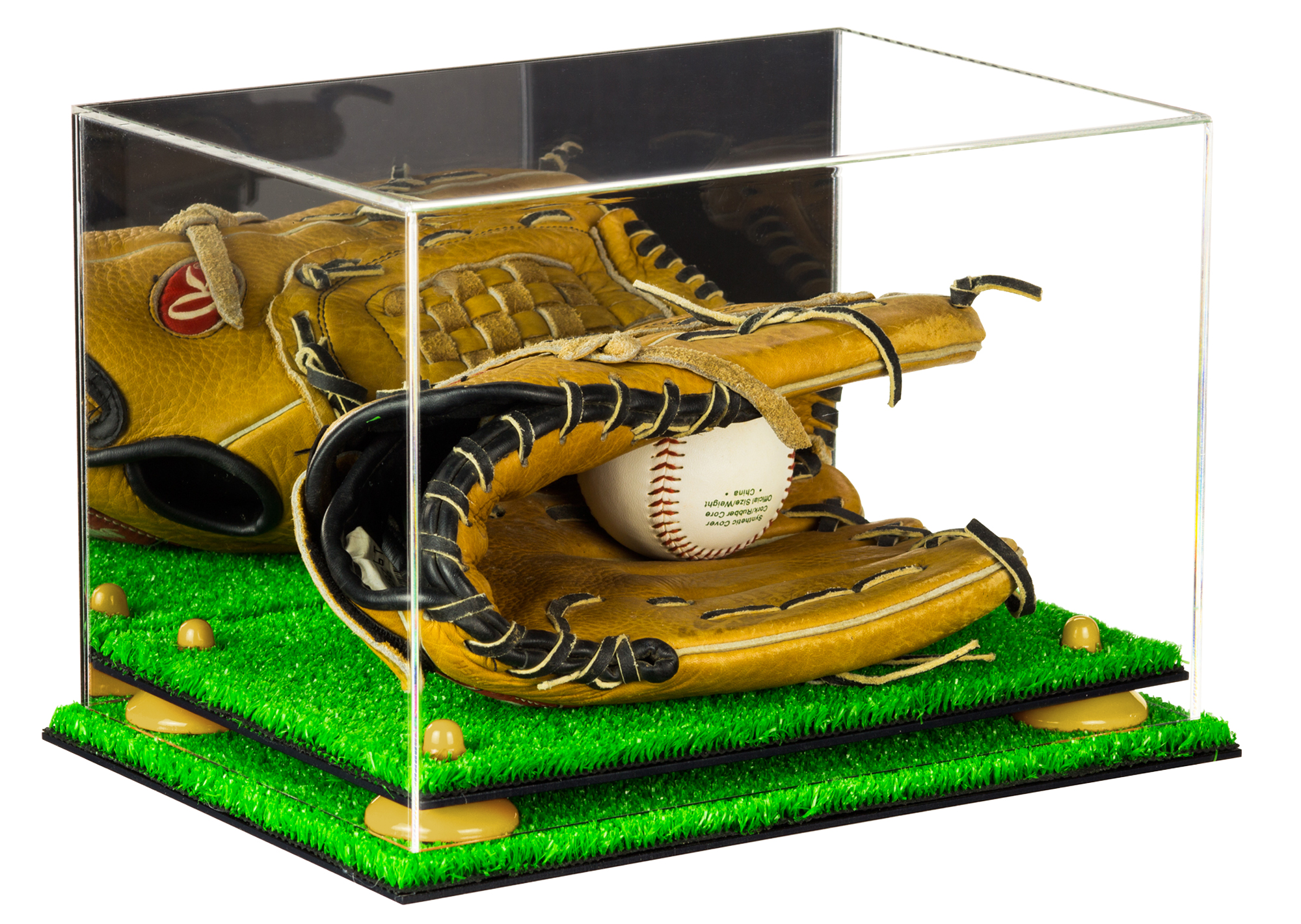 Protect and display your collectible baseball glove in one of our beautiful, high-quality display cases. This display case will make your memorabilia stand out and provide protection from damage caused by dust, spills, fingerprints, light or simply something falling on top of it. These cases are constructed of 1/8" crystal clear, durable high clarity acrylic. Back is mirrored. Front and top of case are made from one piece of acrylic (plexiglass), giving an aesthetically pleasing rollover appearance with fewer seams.