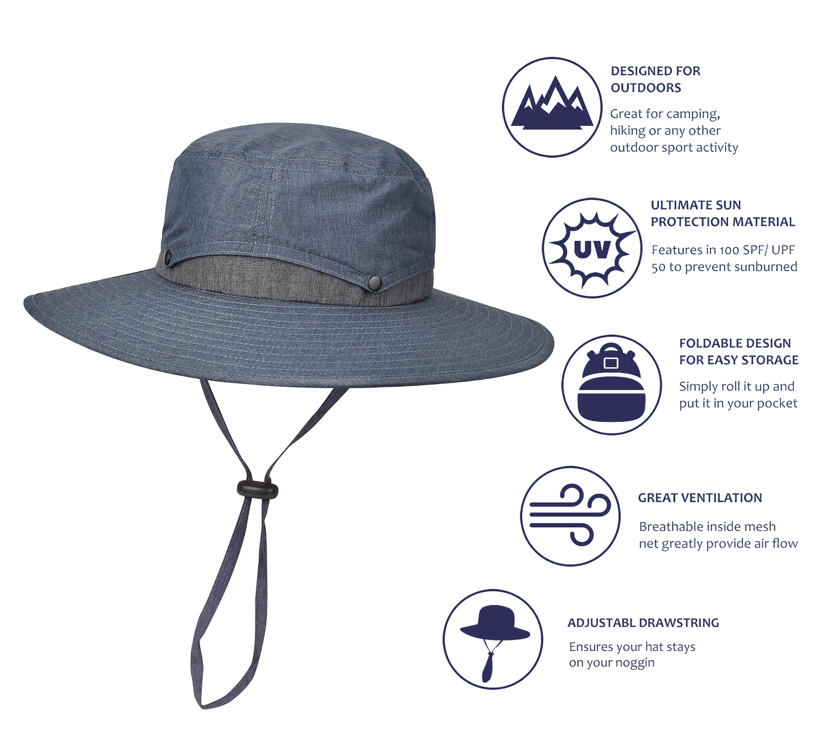 ● Great Sun UV Protection - 3.7" wide brim, 24" head circumference, one size fits most adults. Adjustable drawstring keep hat firmly in place in windy, 50+ UPF