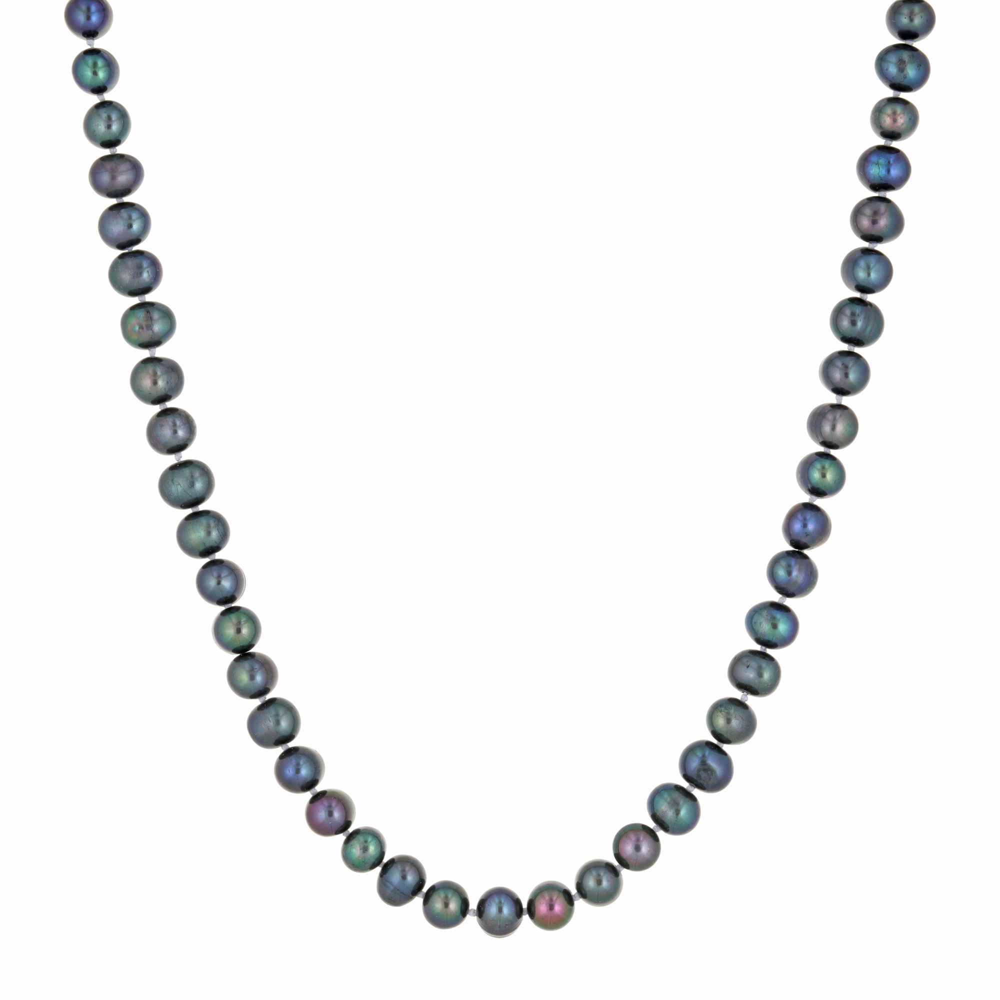 Indulge in the timeless elegance of our Women's 925 Sterling Silver 6-7MM Freshwater Black Pearl 20 Inch Necklace. This exquisite necklace is more than just an accessory; it's a statement of sophistication and individuality. The deep, rich tones of the black pearls evoke a sense of mystery and allure, making it the perfect symbol of confidence for the woman who embraces her unique beauty. Imagine adorning yourself with a piece that enhances your natural grace, capturing the admiration of everyone around you.