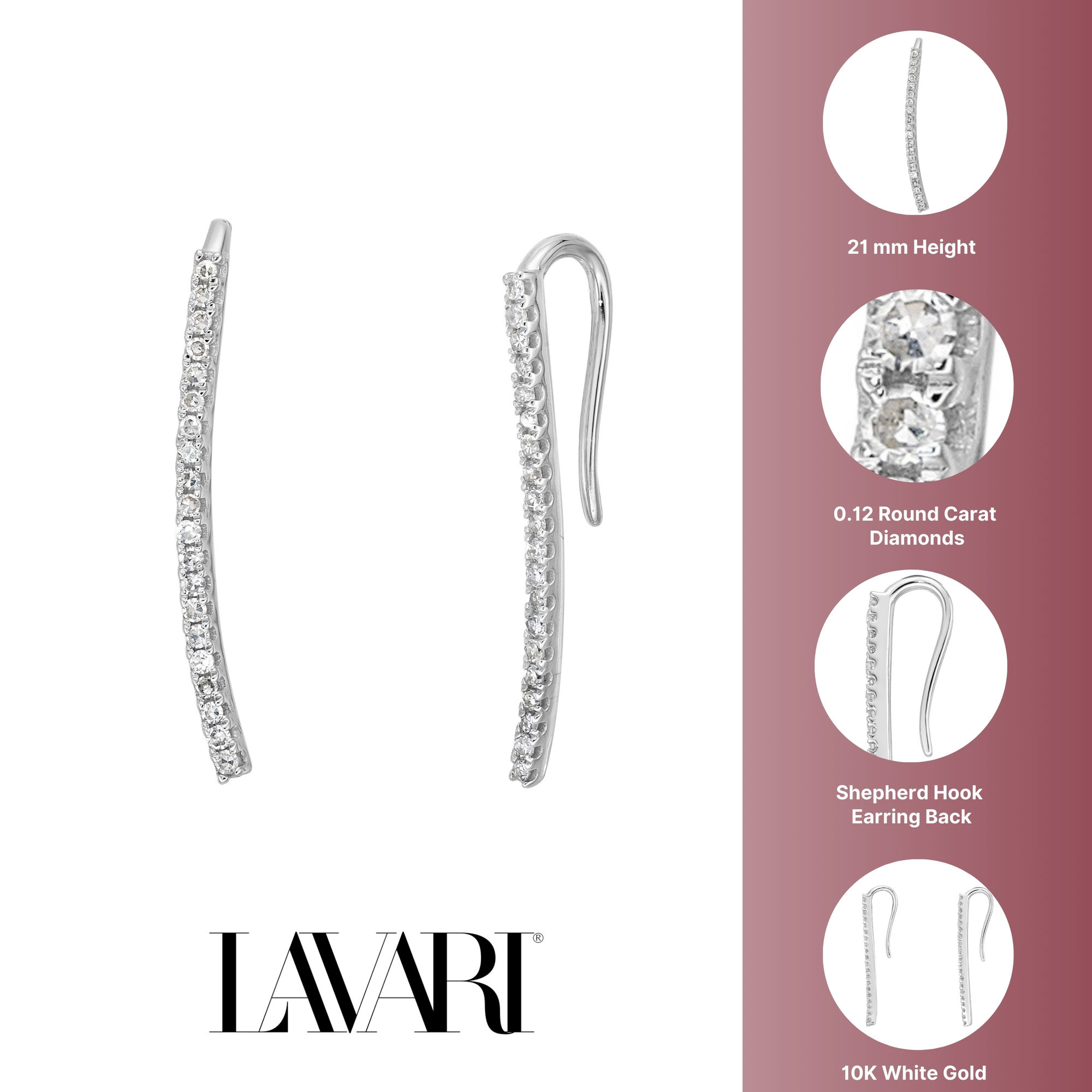 0.12 Carat Round Diamond Stack Crawler Earrings for Women in 10K White Gold