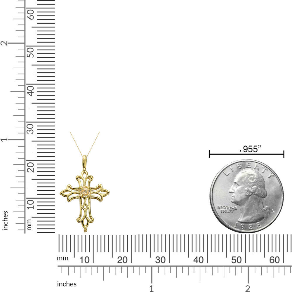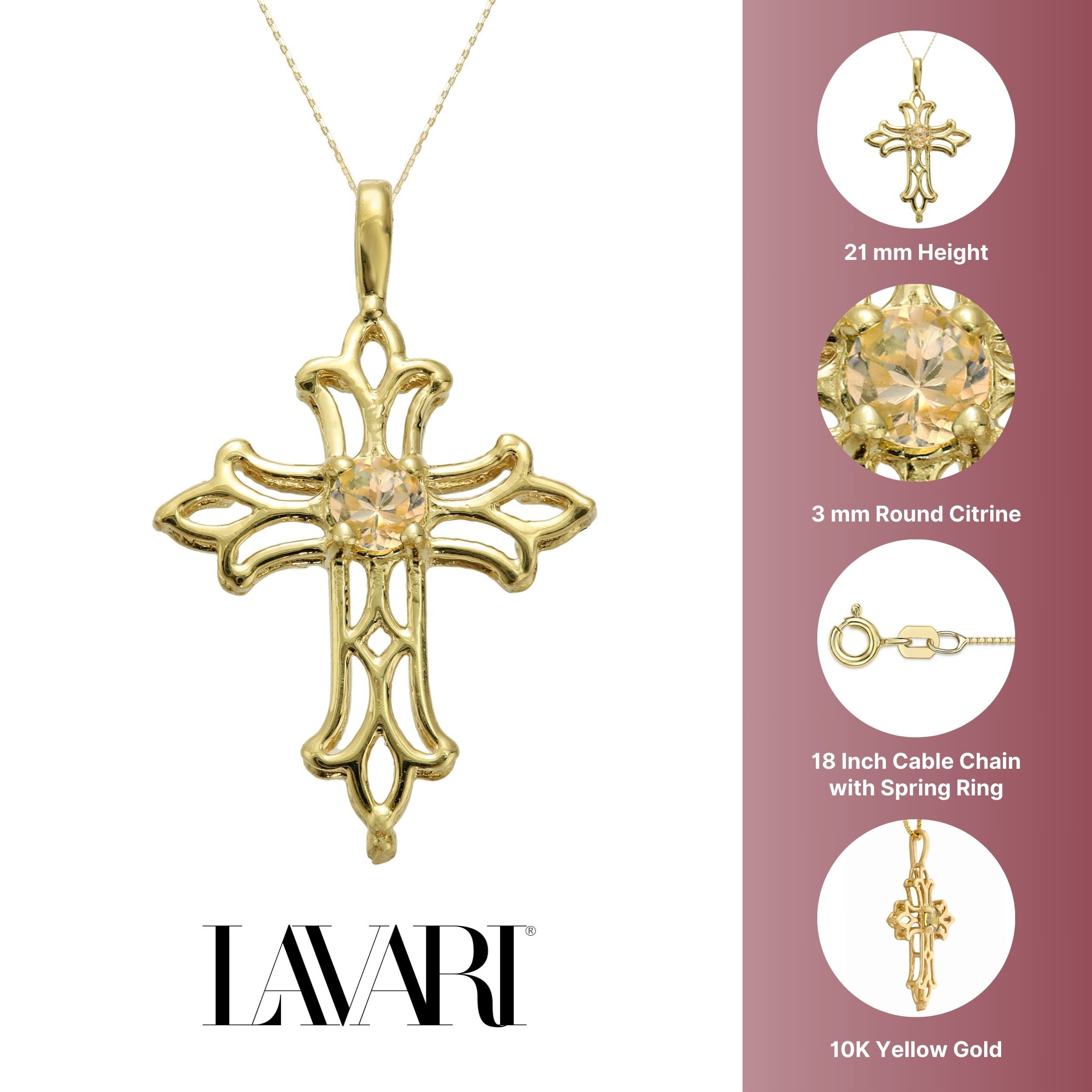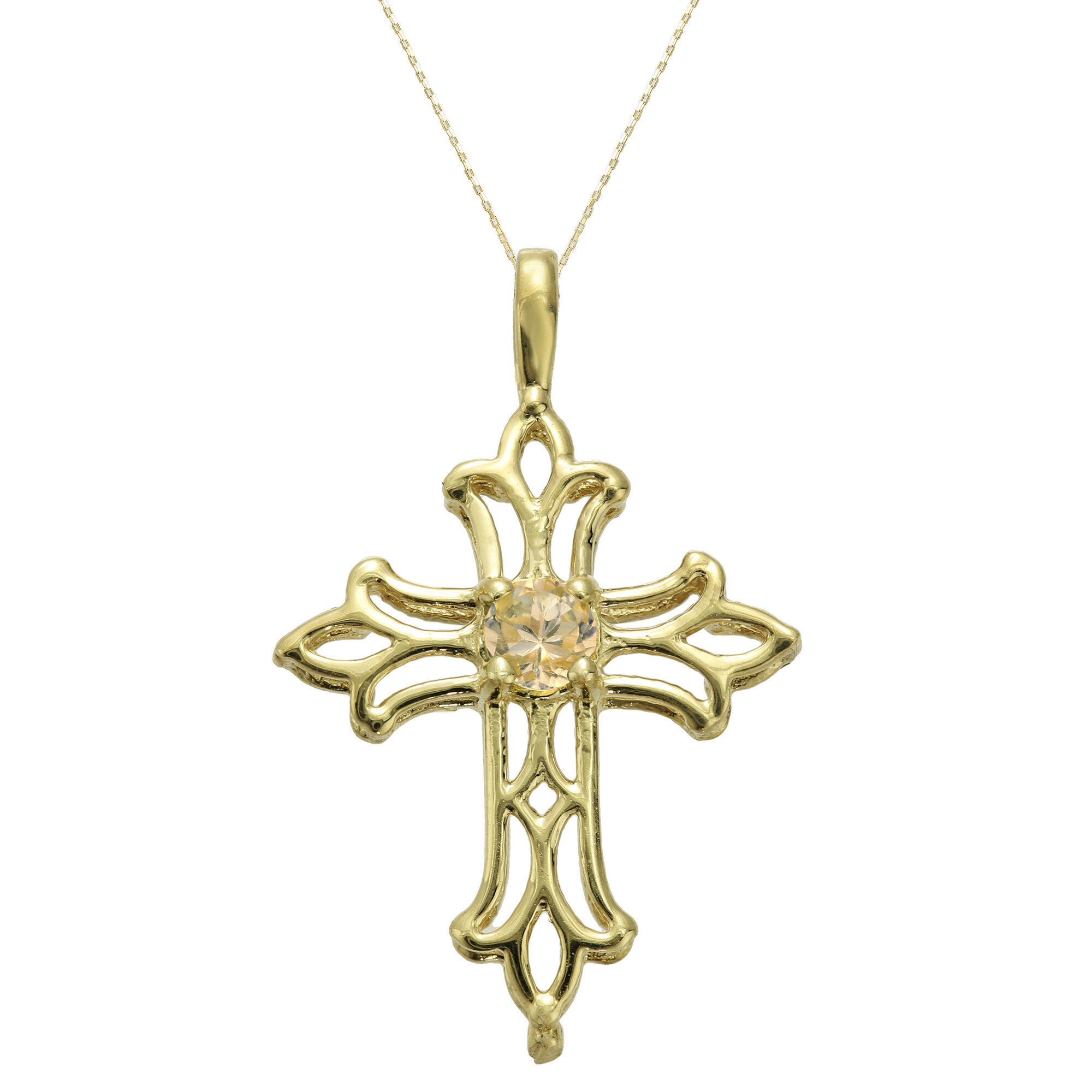 3mm Round Natural Citrine Cross Pendant Necklace in 10K Yellow Gold - Birthstone