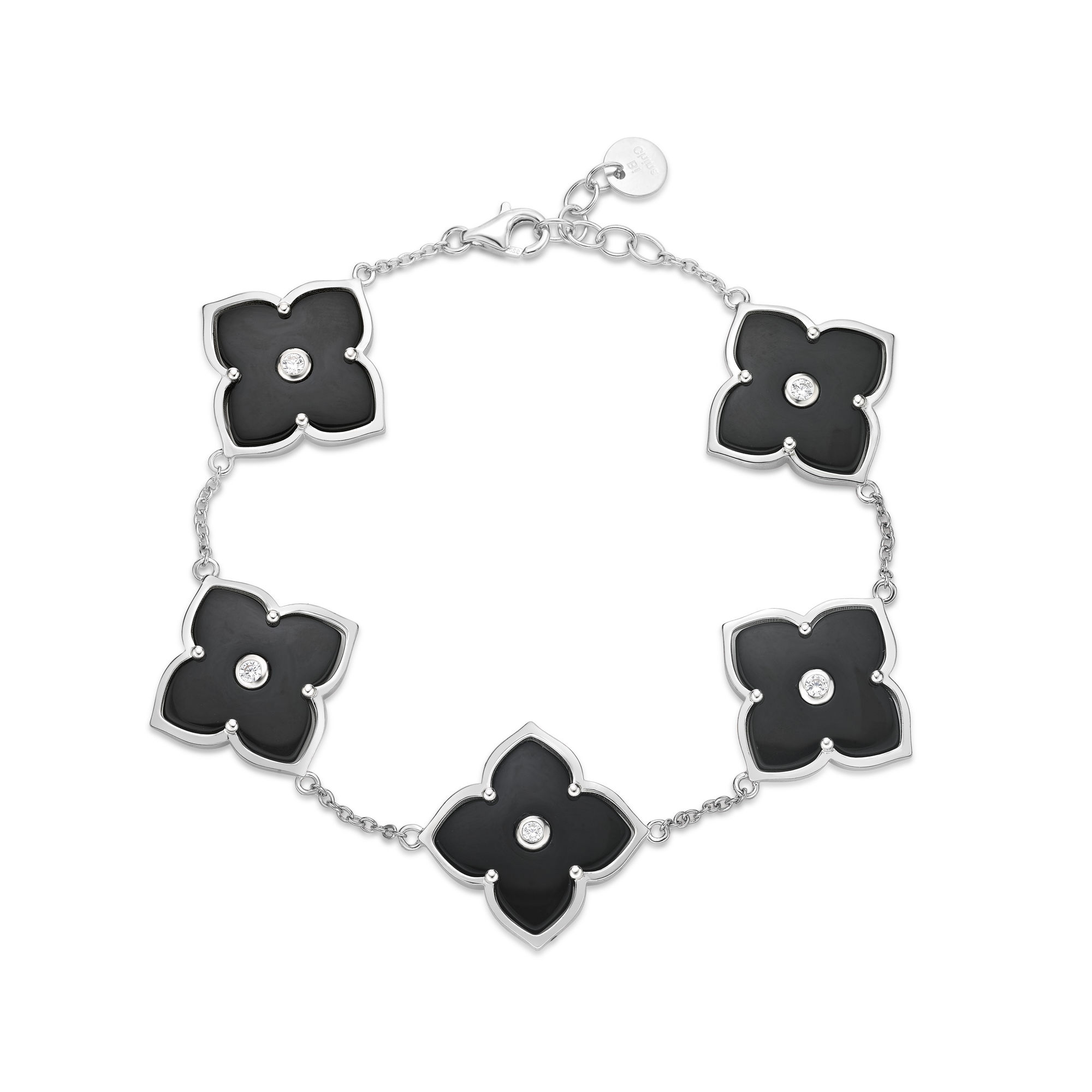Elevate your style with our stunning Black Onyx Five-Station Flower Bracelet. Designed for women who appreciate timeless elegance and captivating beauty, this bracelet is the perfect addition to your jewelry collection.