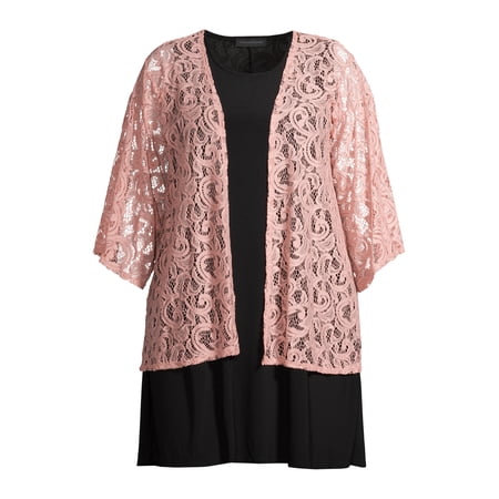Rachel Rachel Women's Plus Size 3X Lace Kimono Twofer Dress Black/Mauve ---W10--