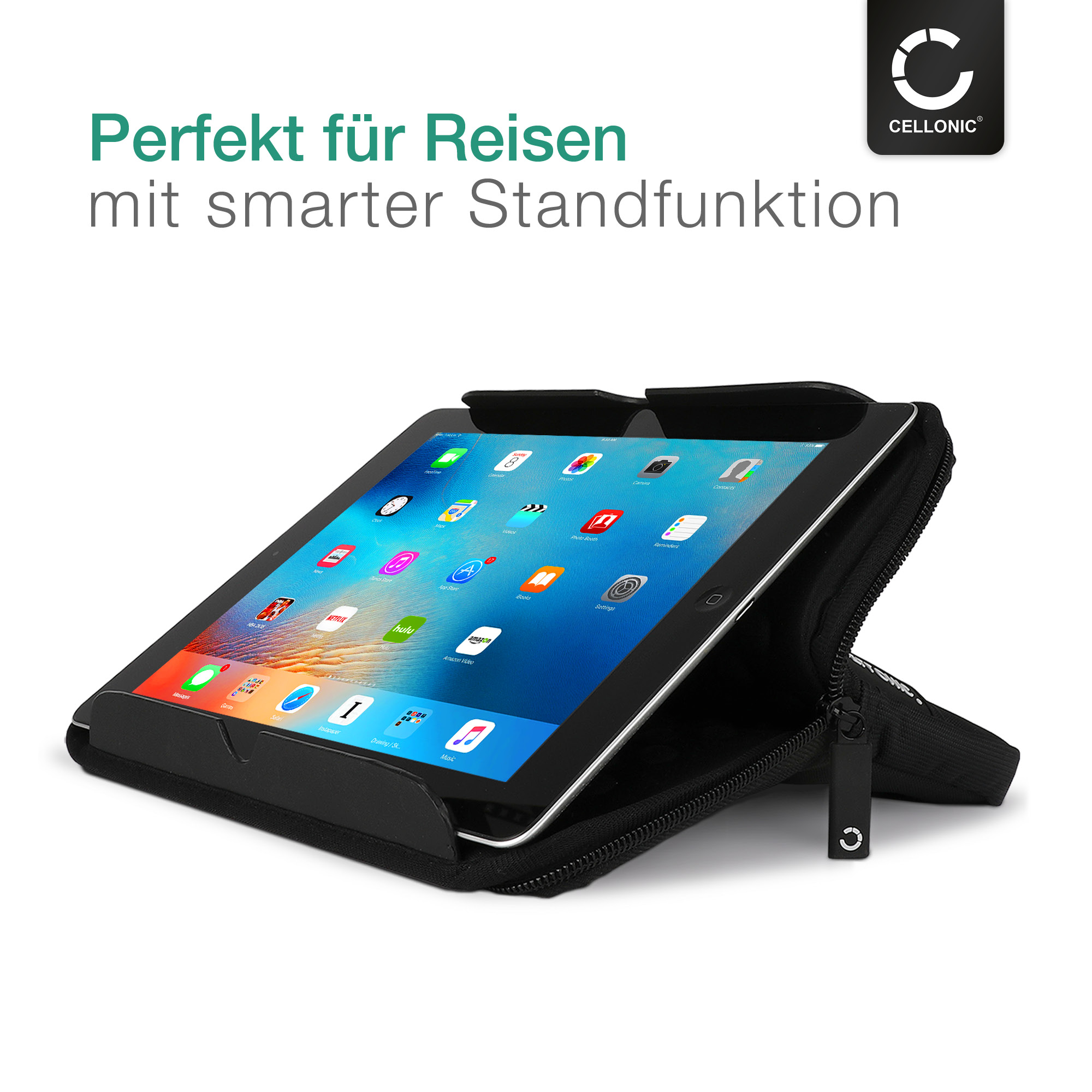 Universal Tablethülle von CELLONIC®: Schutz für Tablet PC, eBook und eReader. Die gepolsterte Tablettasche mit Standfunktion und Anti-Shock Bubbles