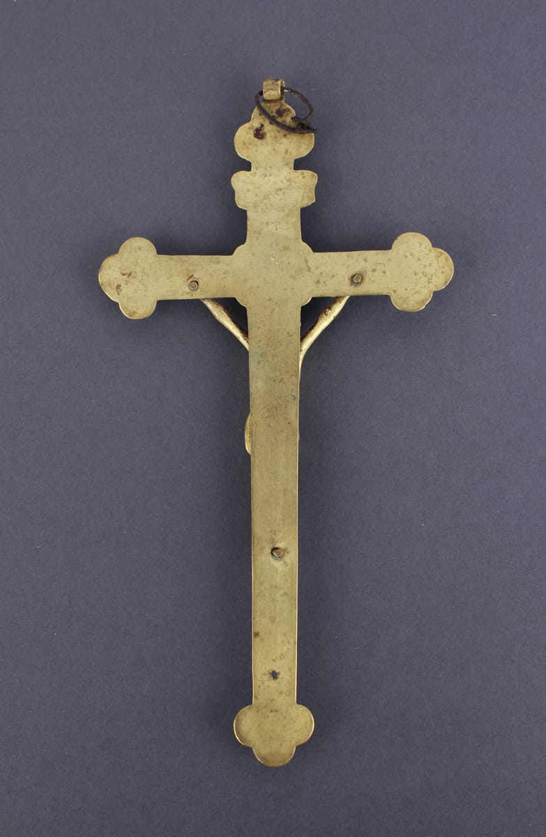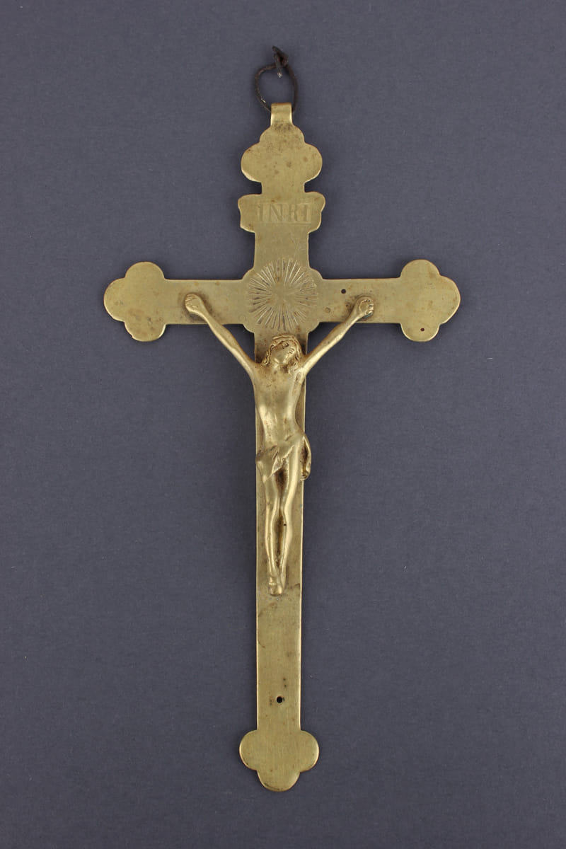 MessingLänge: ca. 18 cmdie Gebeine am unteren Kreuzende fehlen, sonst sehr schönes und gut erhaltenes Sammelobjekt.