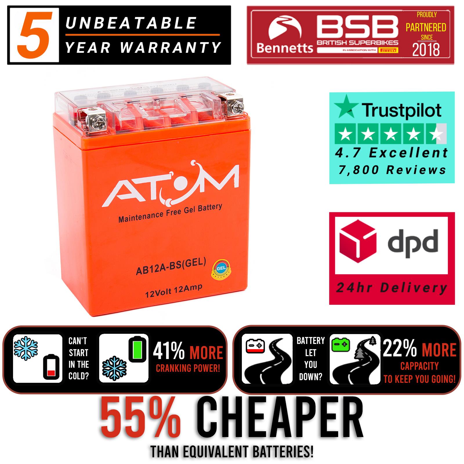 Atom's advanced Gel technology series offers you a lighter, more compact battery with a reduced charging time over your standard conventional battery.