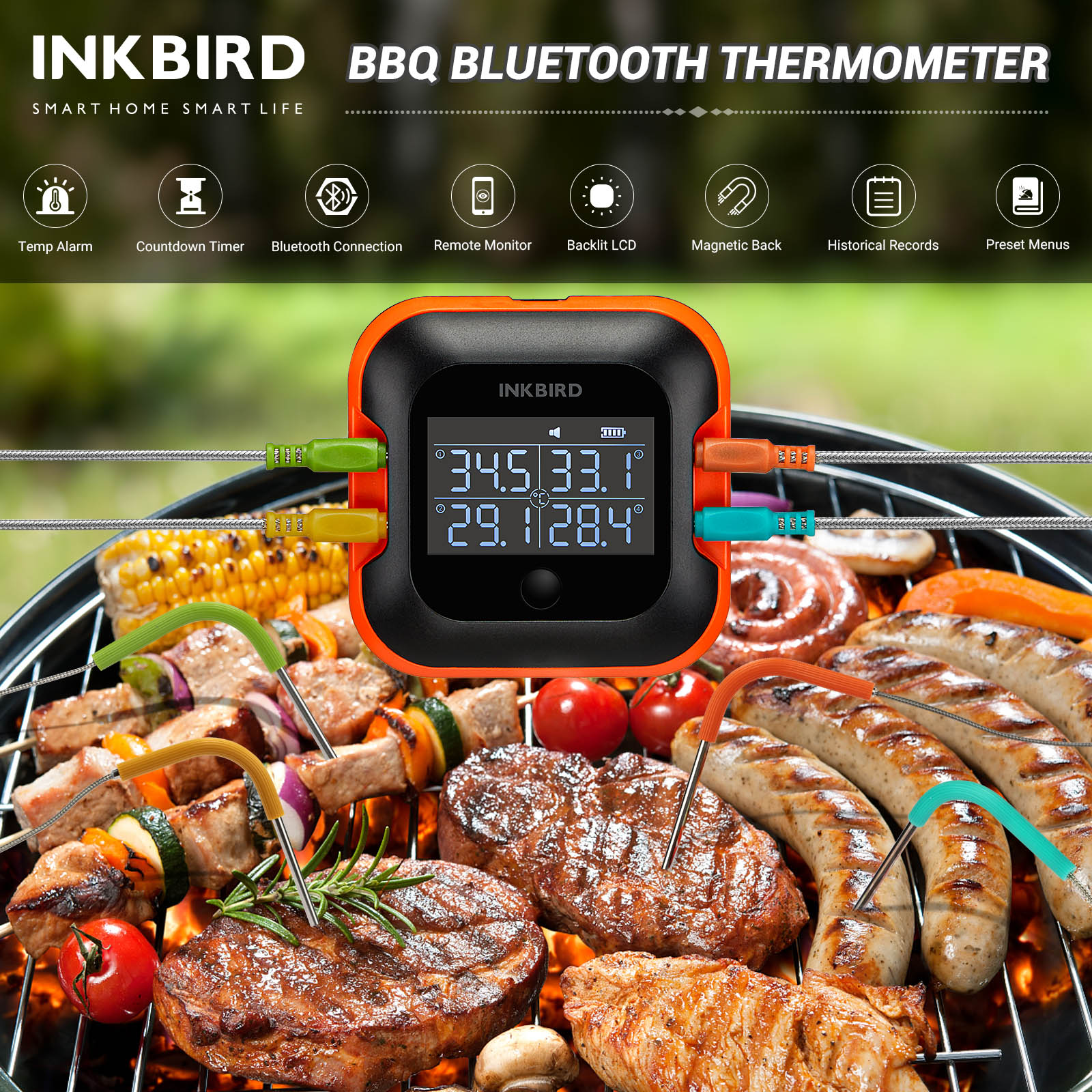 simultaneously monitor the separate temperatures of 4 different types of food without confusion