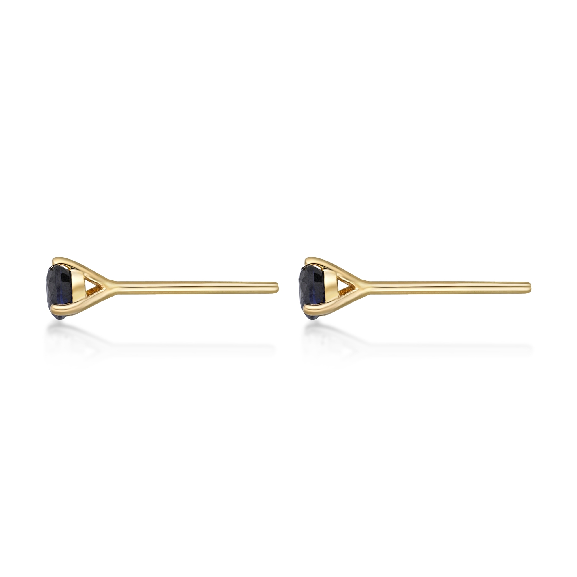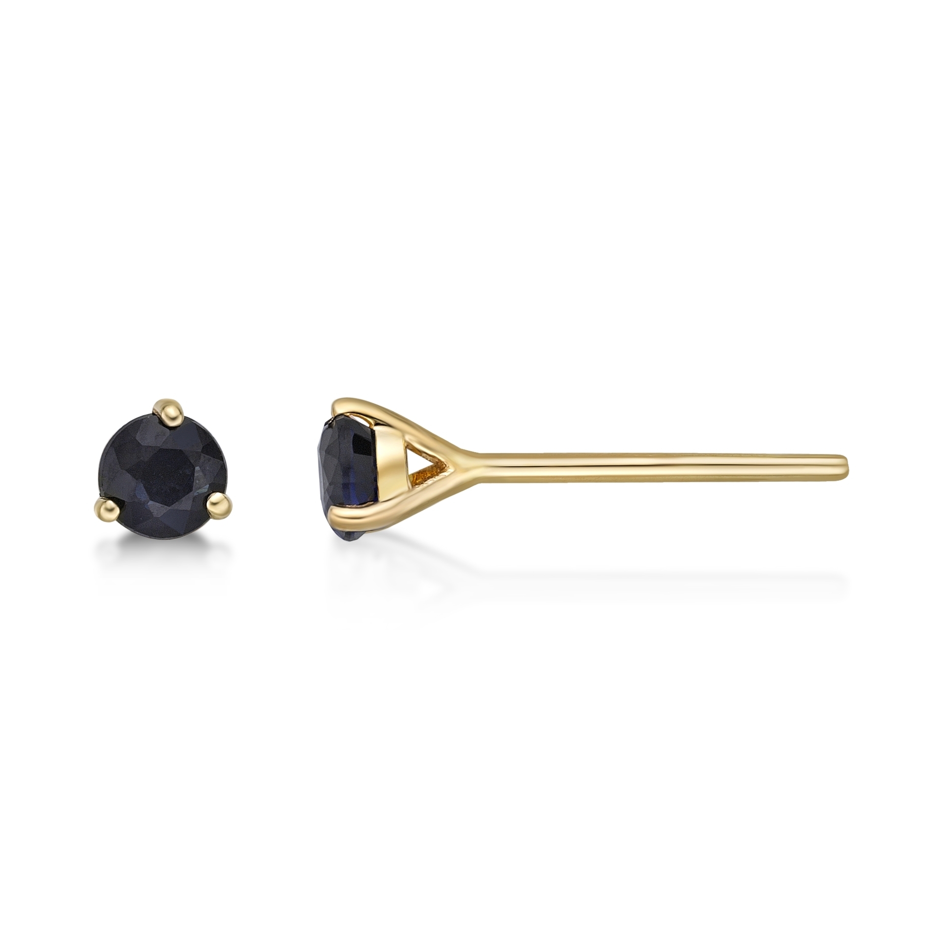 14K Yellow Gold 3MM Martini Stud Birthstone Earrings With Round Shape Sapphire
