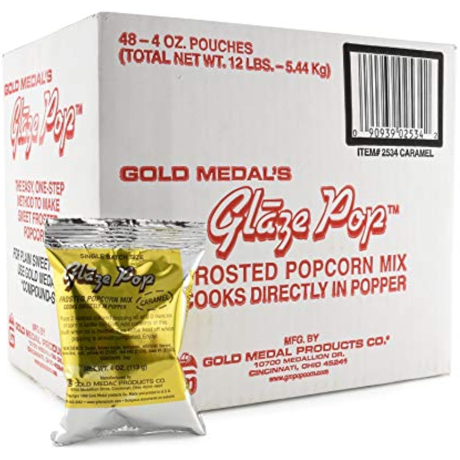 Add the contents of 1 pouch of caramel glaze pop to a 6 or 8-ounce popcorn kit (oil, popcorn, and seasoning) to make a perfect batch of caramel corn. For best results, clean kettle after making a batch of caramel corn. Packed (48) 4-ounce pouches of glaze per case. Size: 48 Pk.