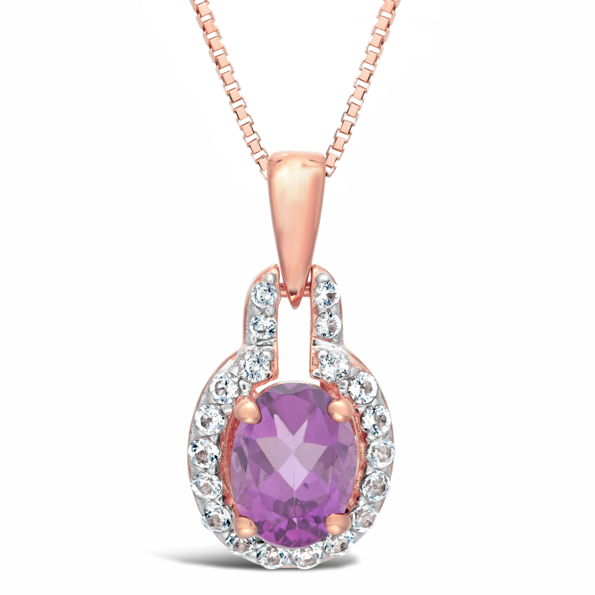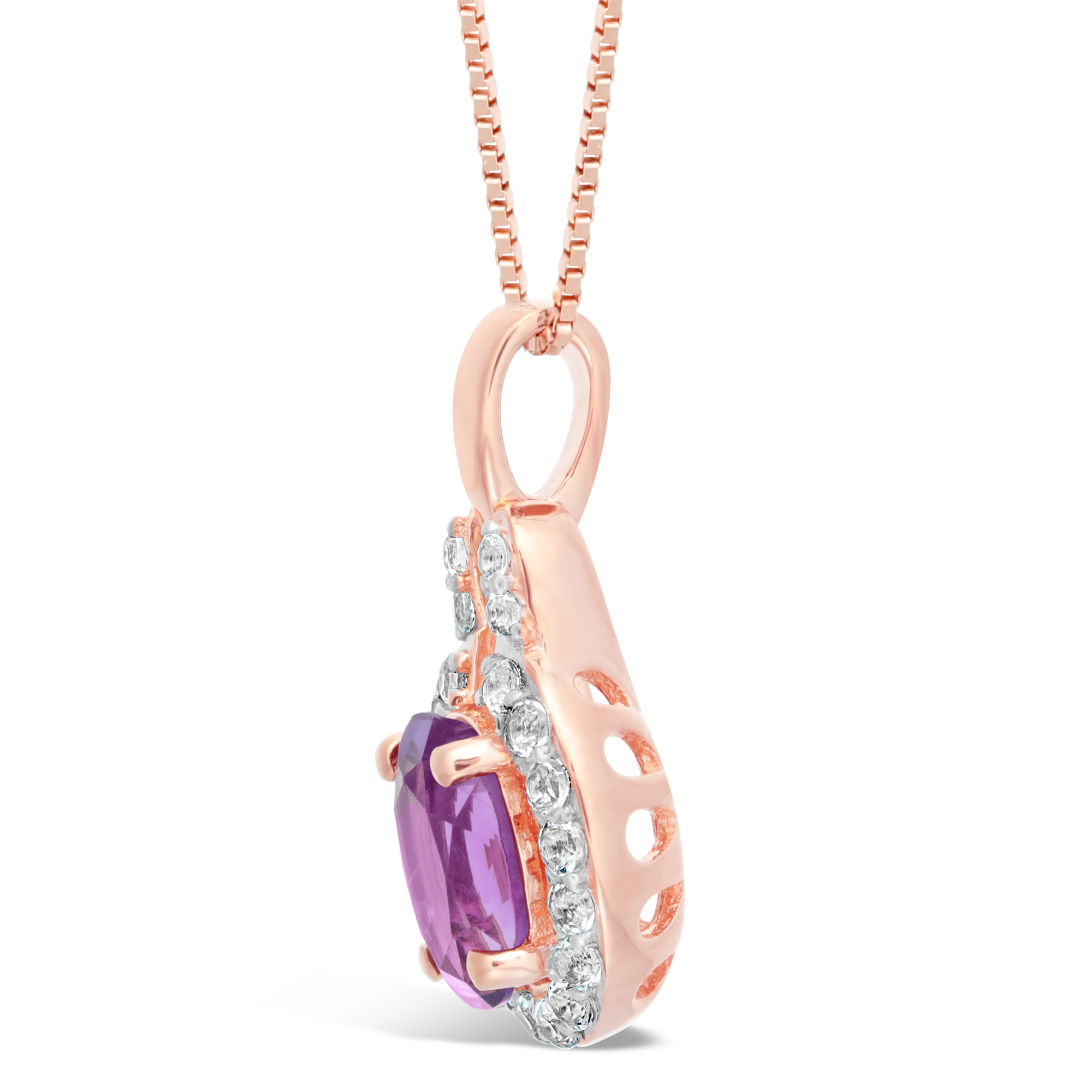 Pink Amethyst Pendant with White Topaz Accent in Rose Plated Sterling Silver